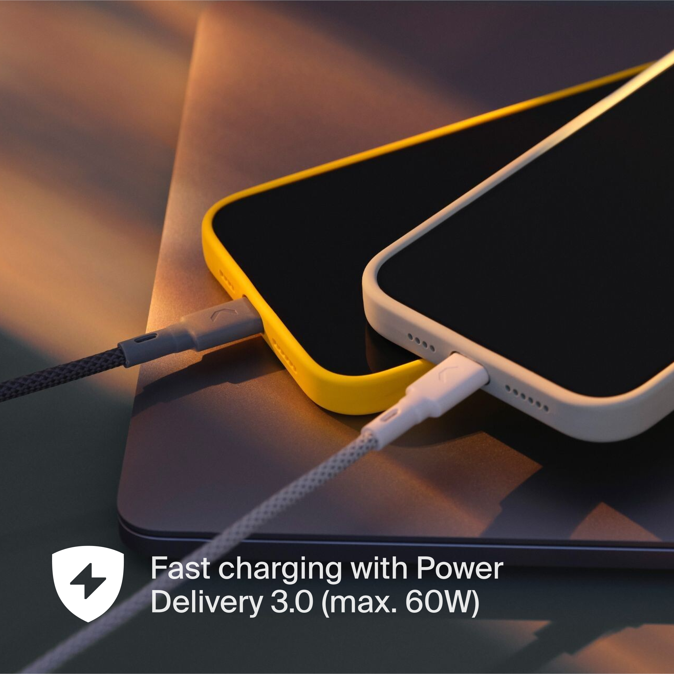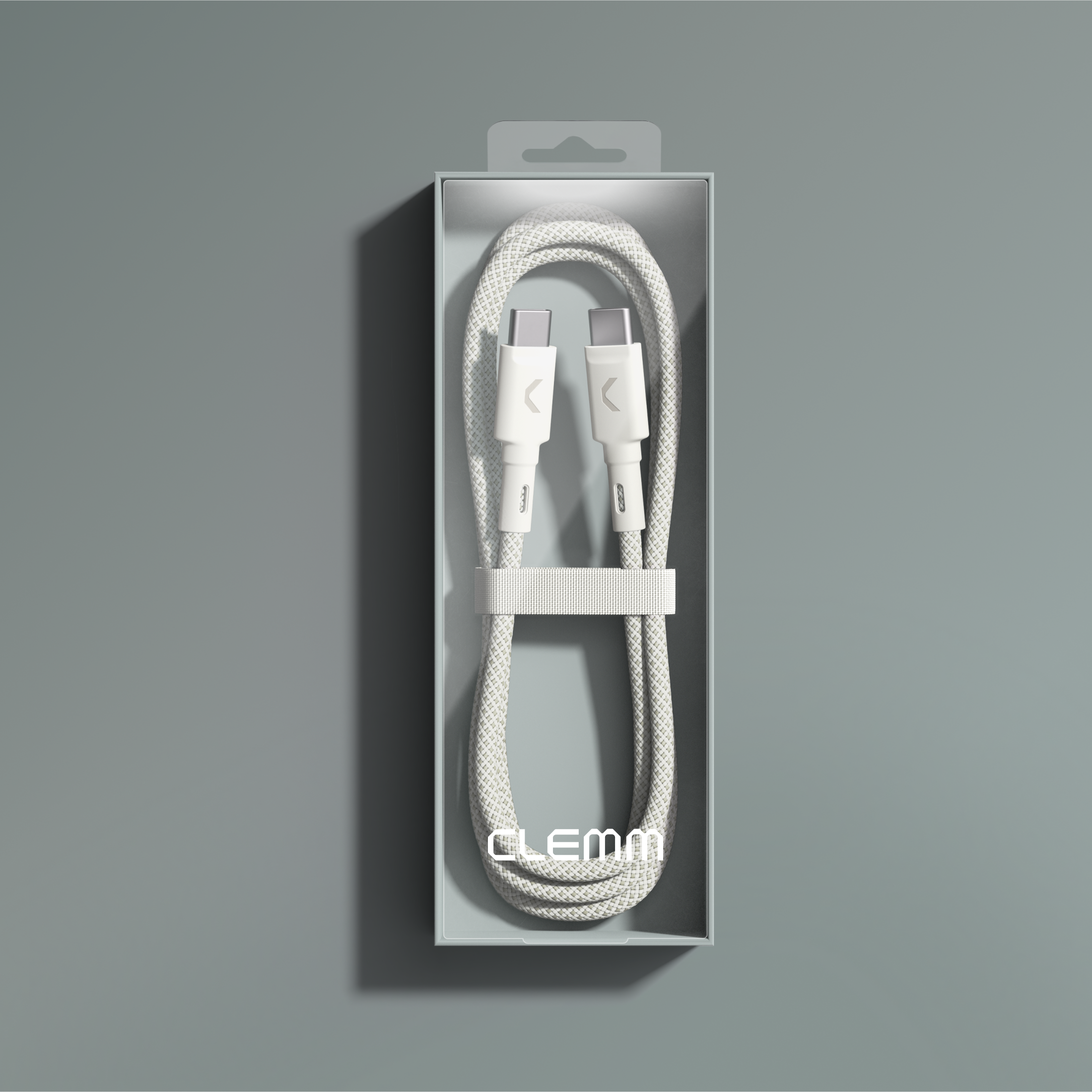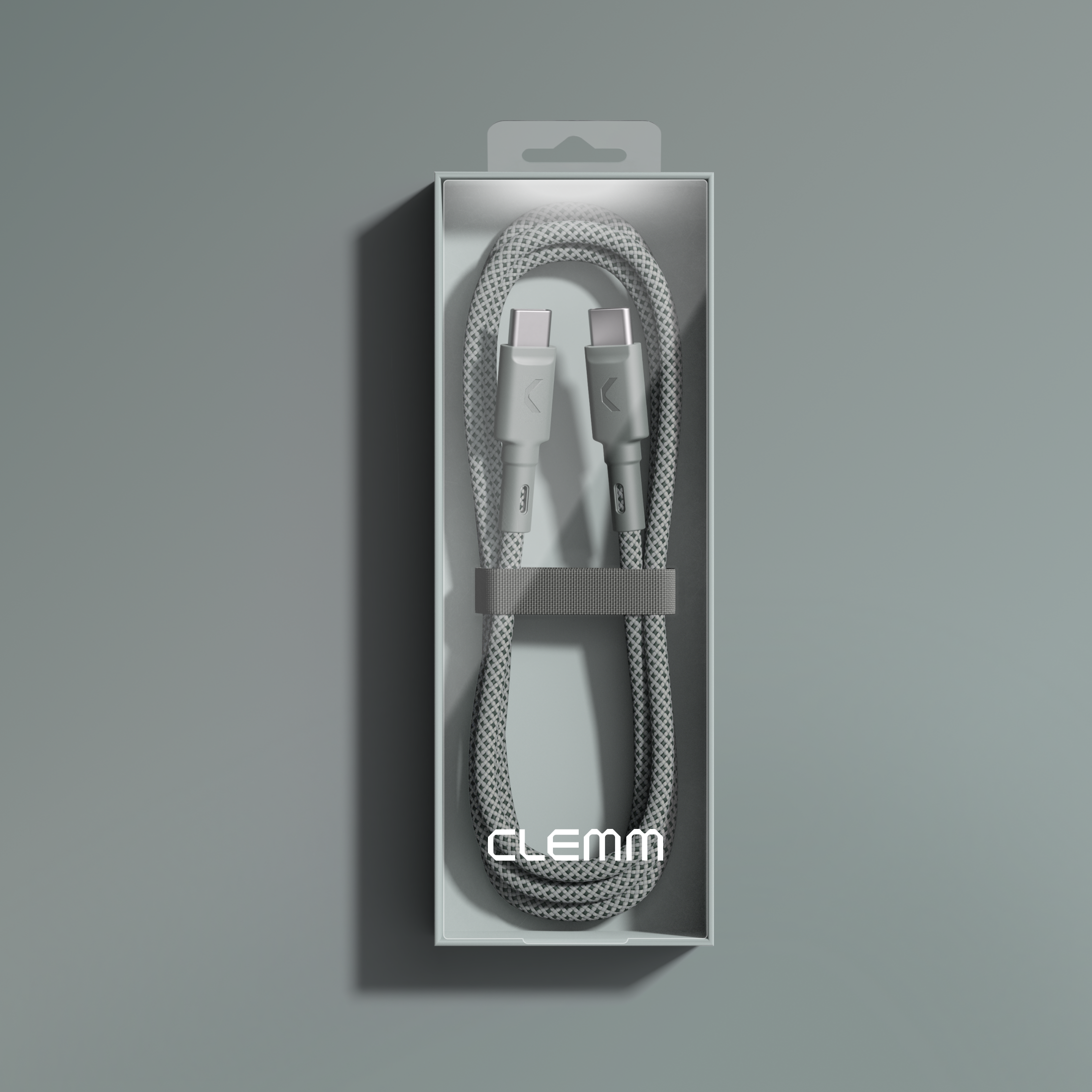 Clemm Chain is a nylon USB-C to USB-C cable designed for charging smartphones, headphones, and other devices. Its sleek design combines functionality and durability.