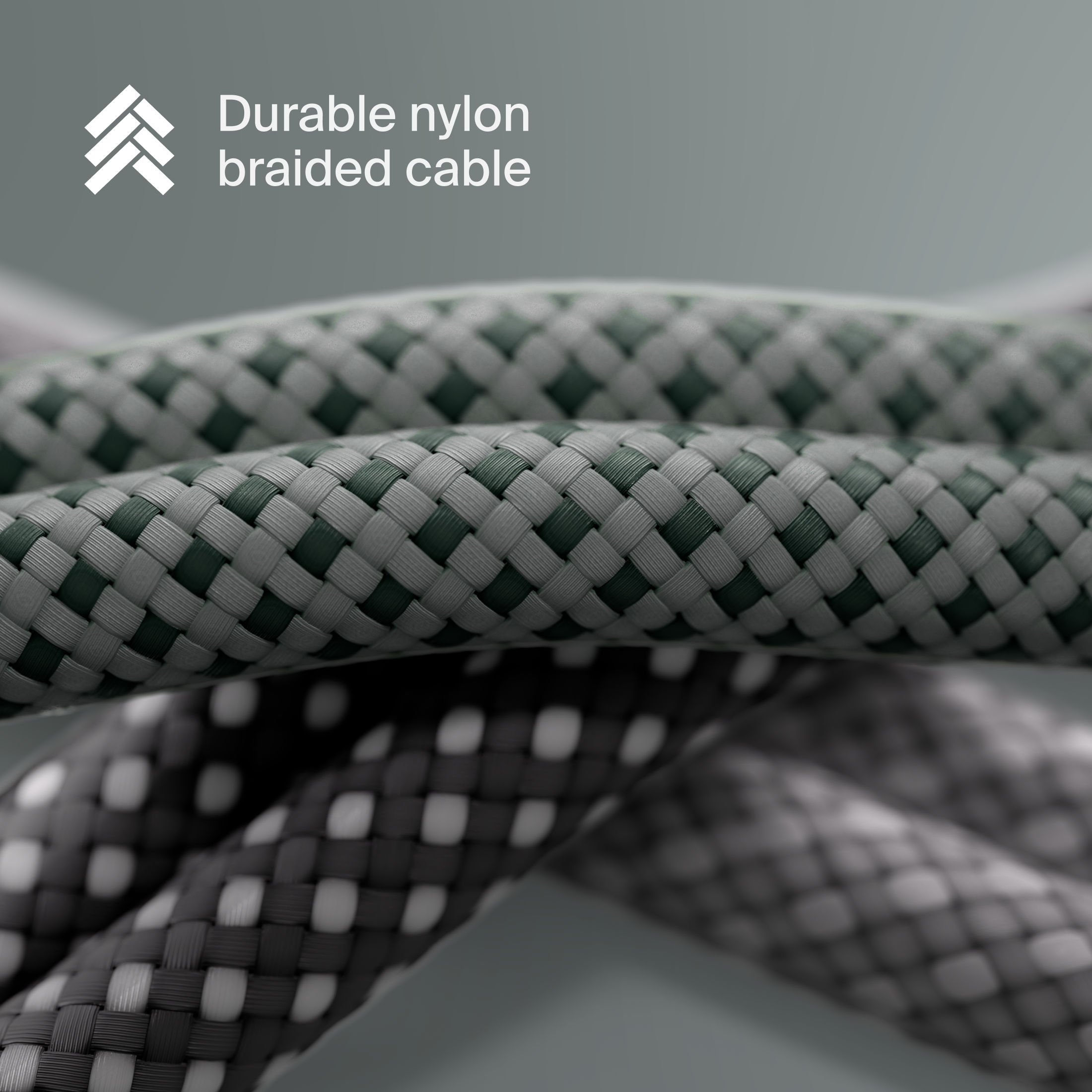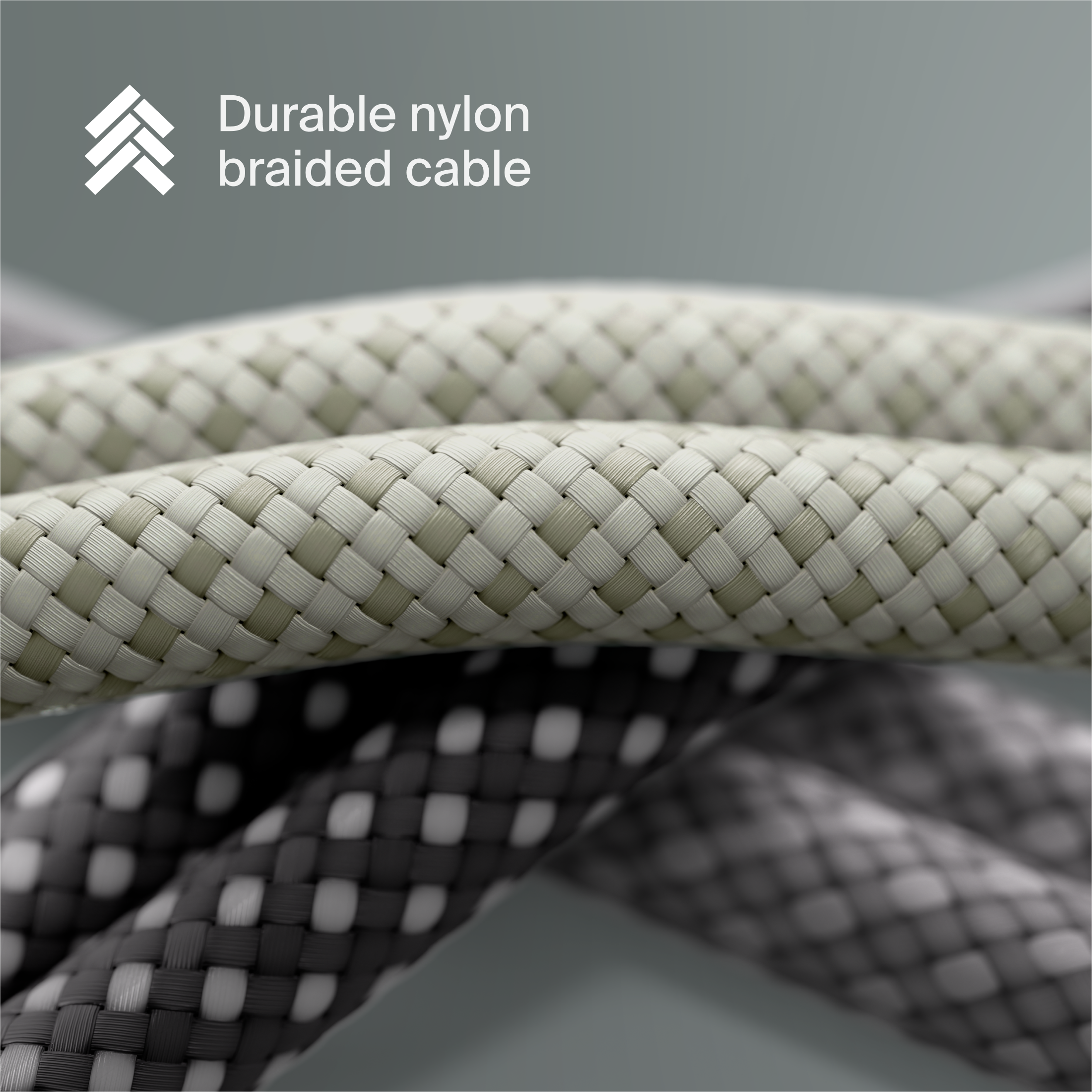 A reinforced nylon weave prevents tangling and fraying, while robust rubberized plastic connectors provide a secure fit and protect against damage. Premium materials ensure long-term reliability.
