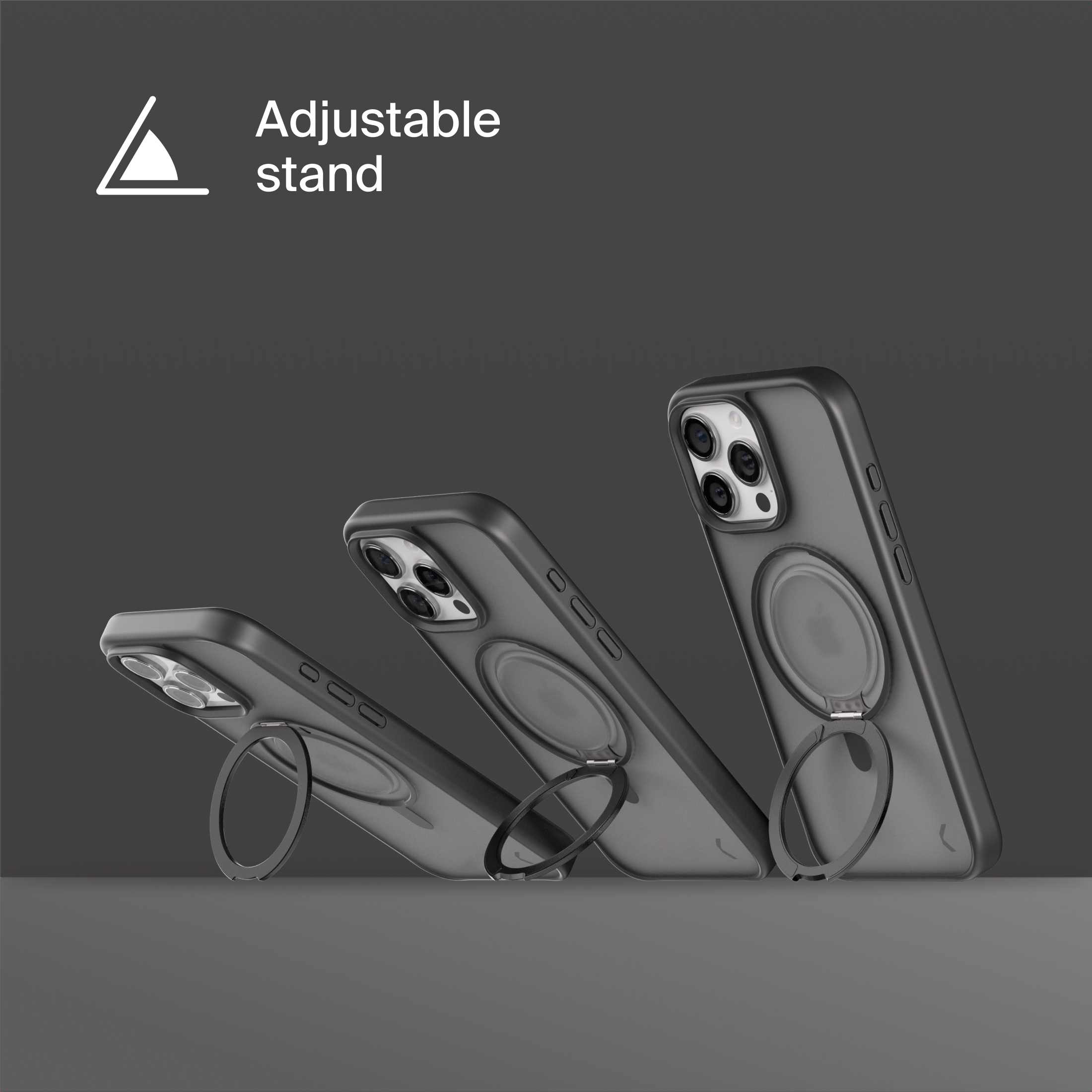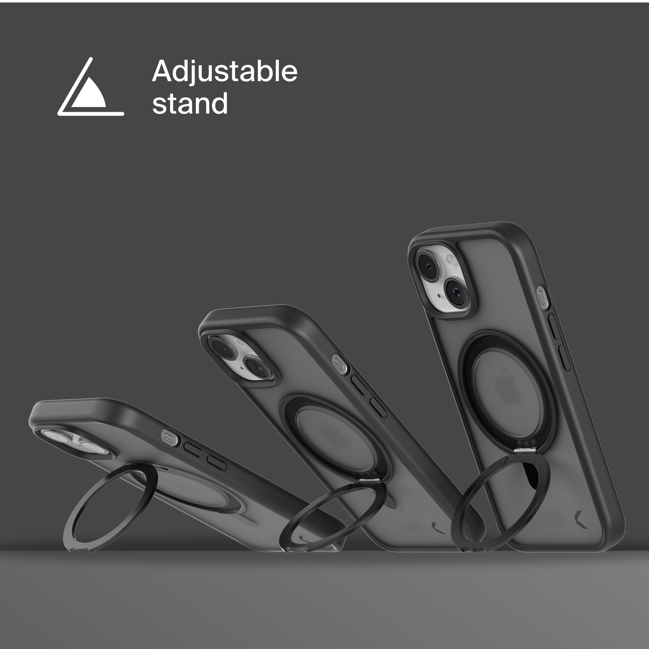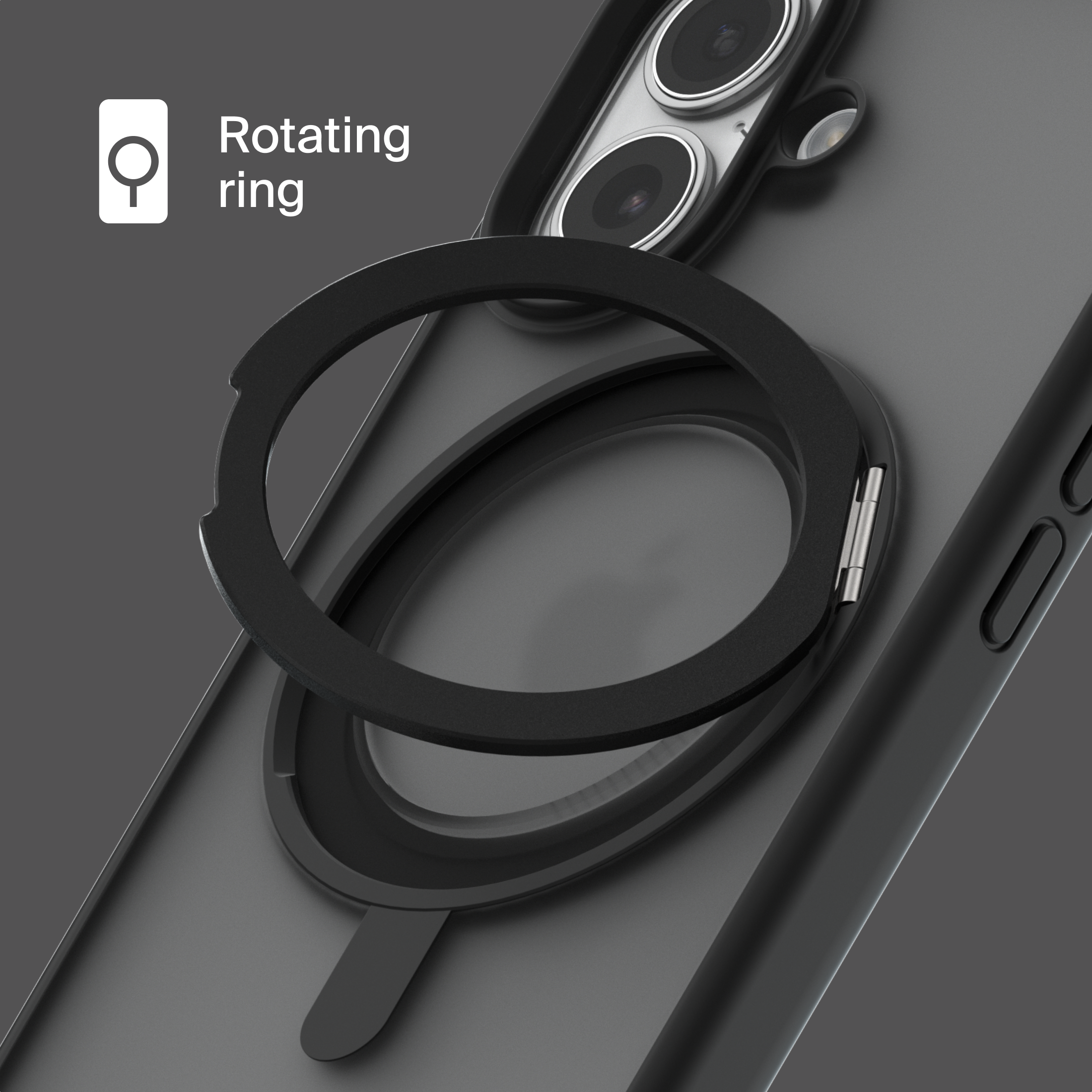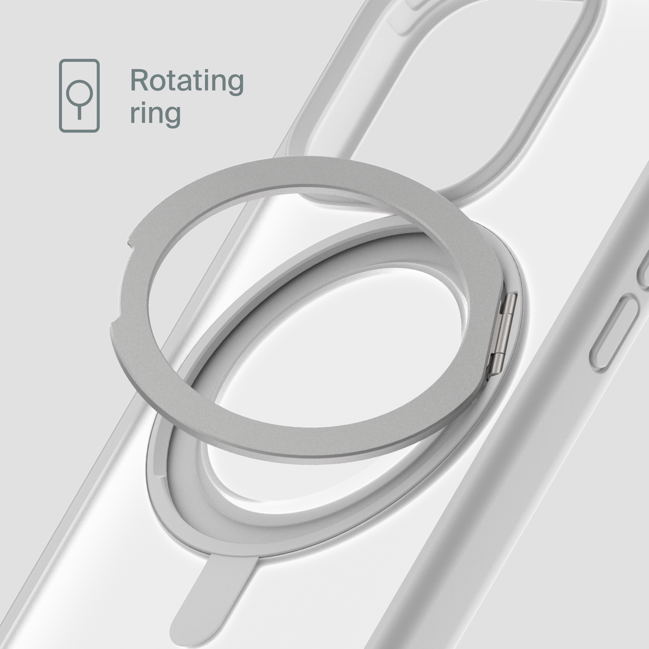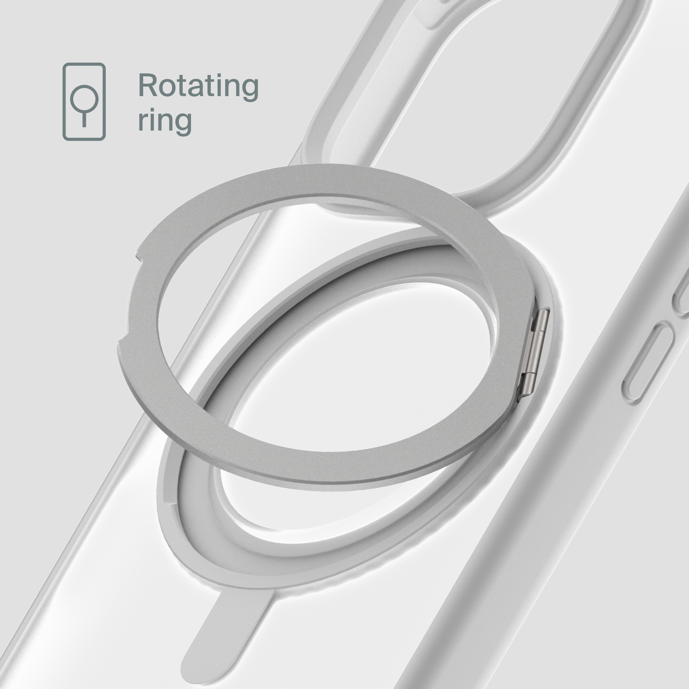 A durable aluminum ring with built-in magnets and a special hinge firmly holds your phone in any position — vertical or horizontal. The scratch-resistant ring is comfortable to hold and doubles as a secure stand for everyday use.