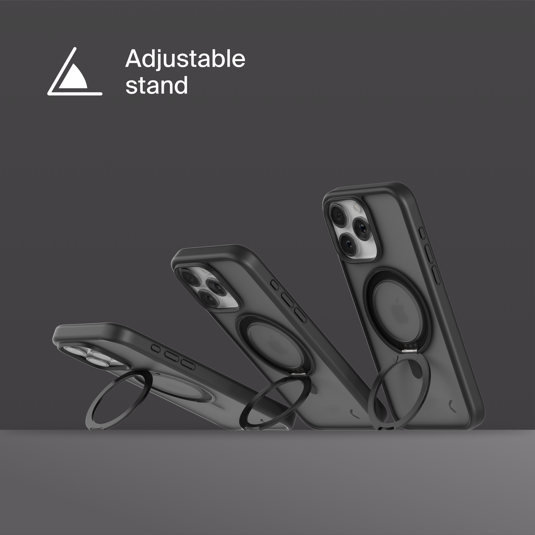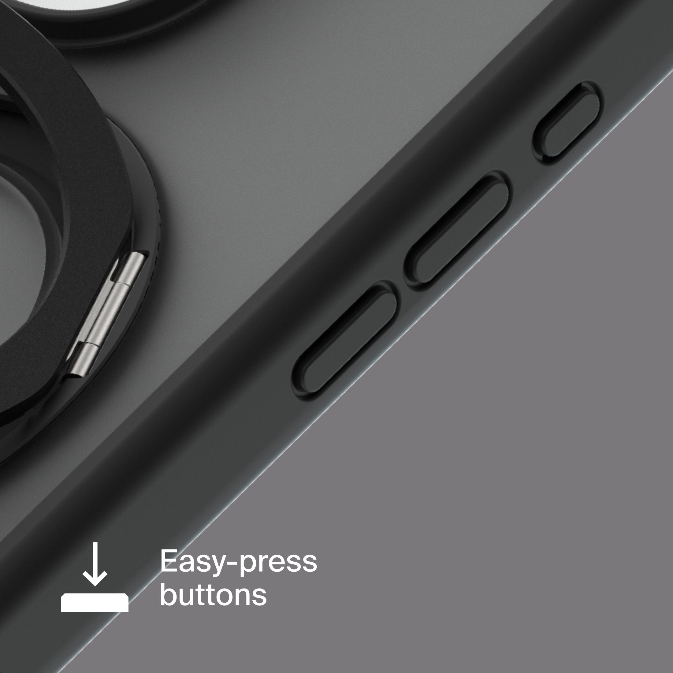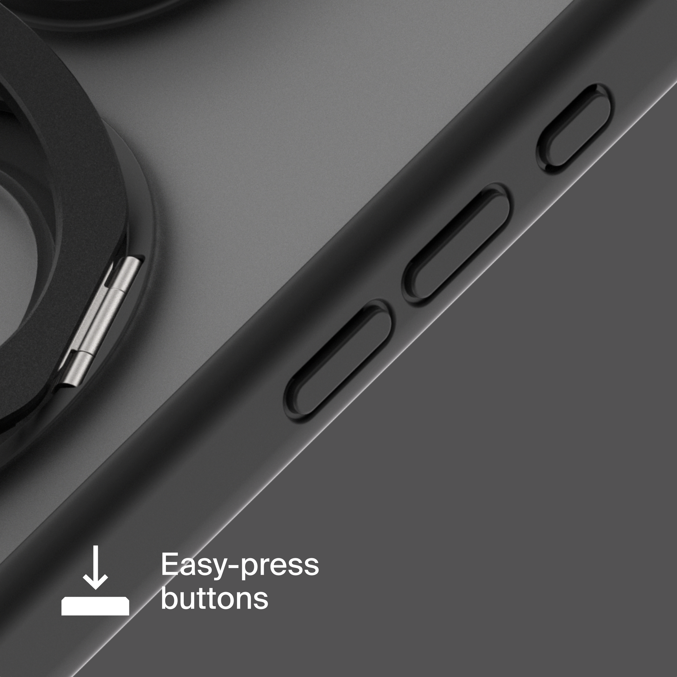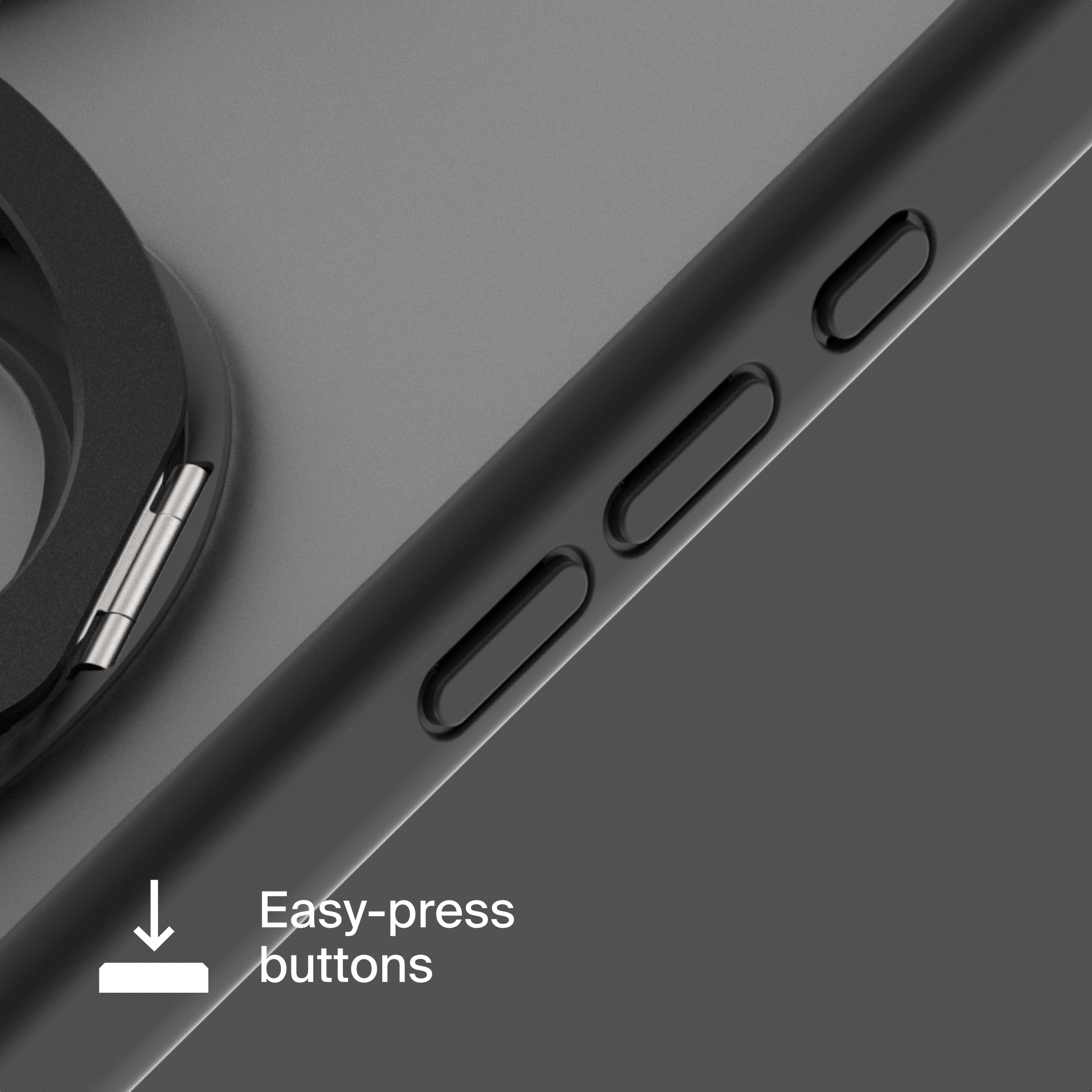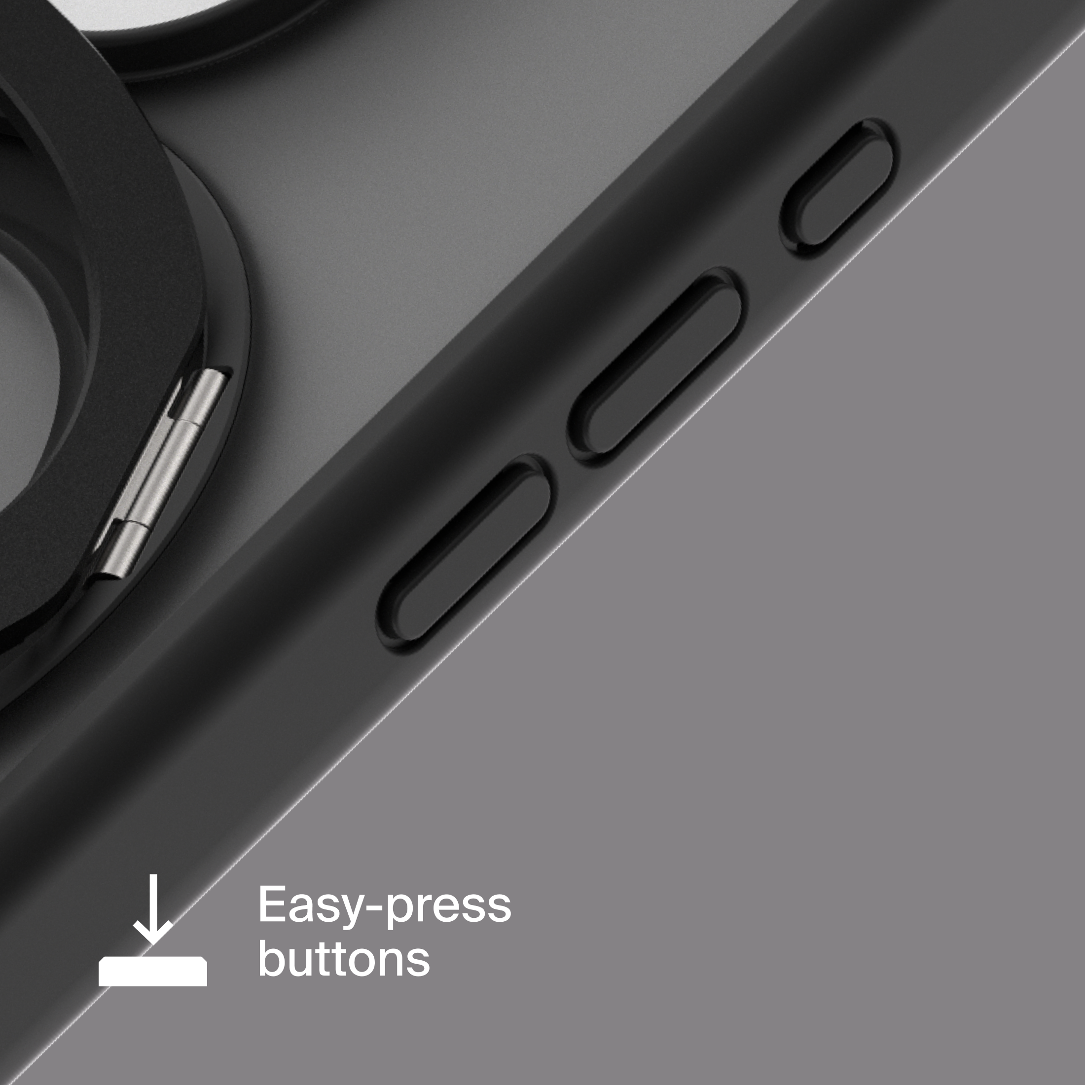 A durable aluminum ring with built-in magnets and a special hinge firmly holds your phone in any position — vertical or horizontal. The scratch-resistant ring is comfortable to hold and doubles as a secure stand for everyday use.