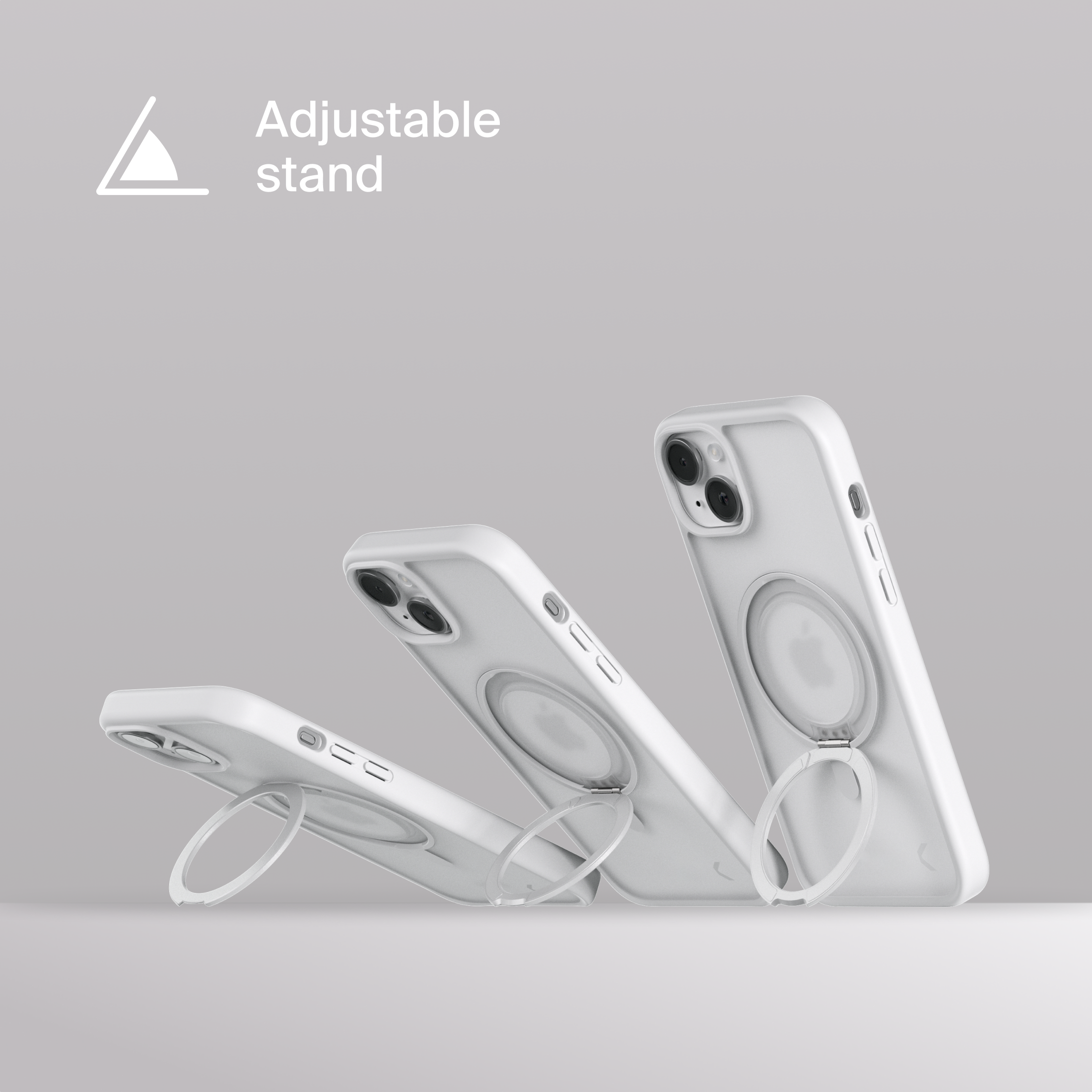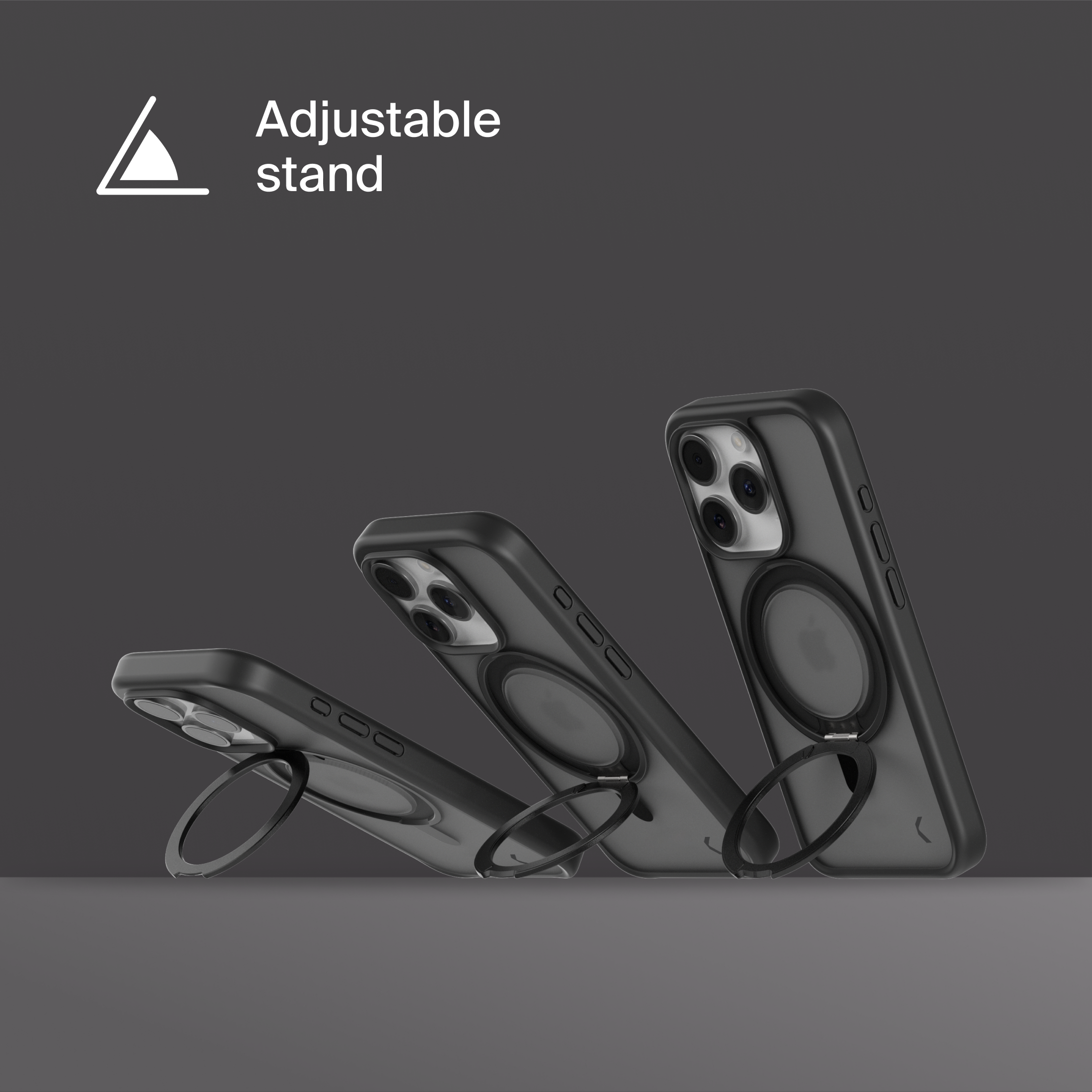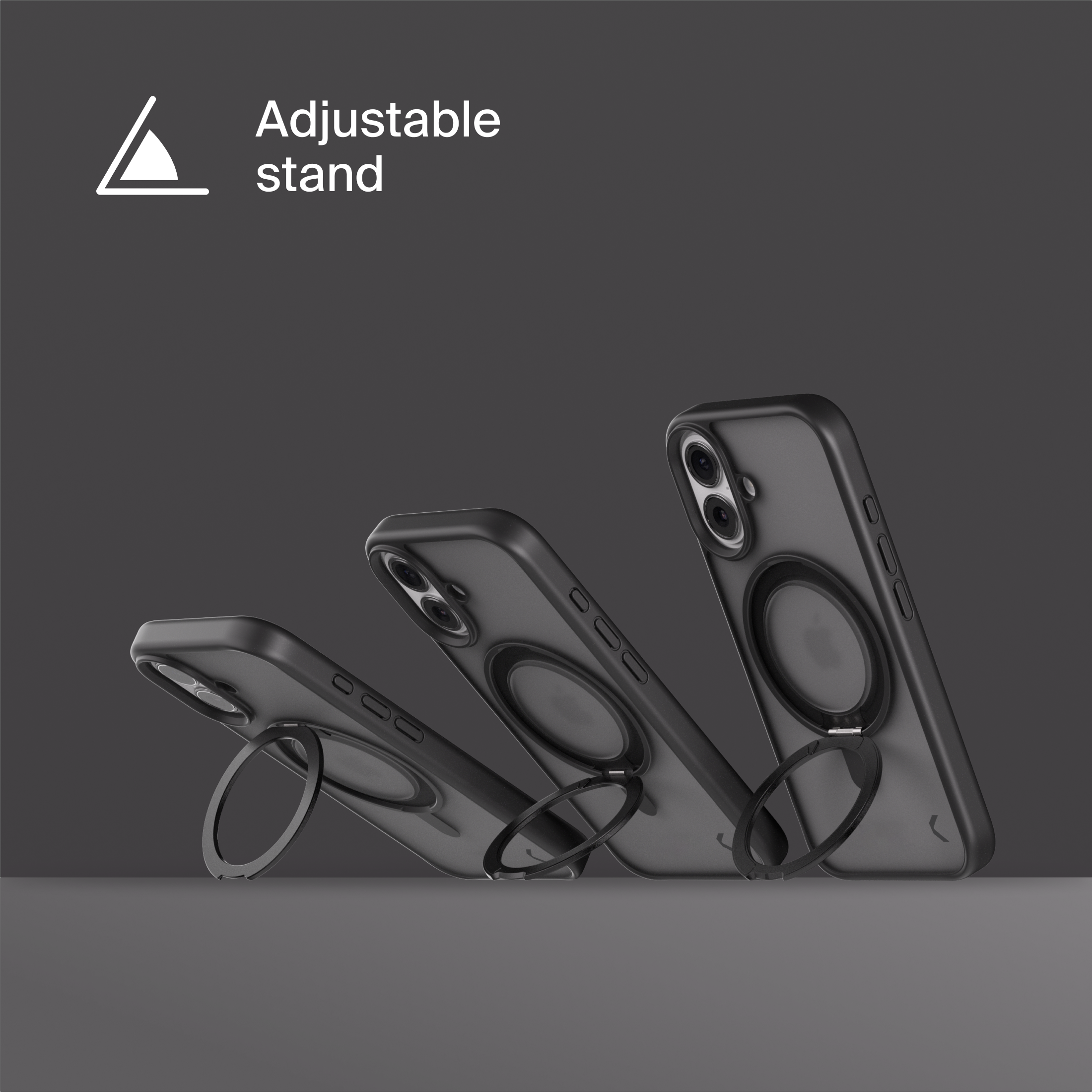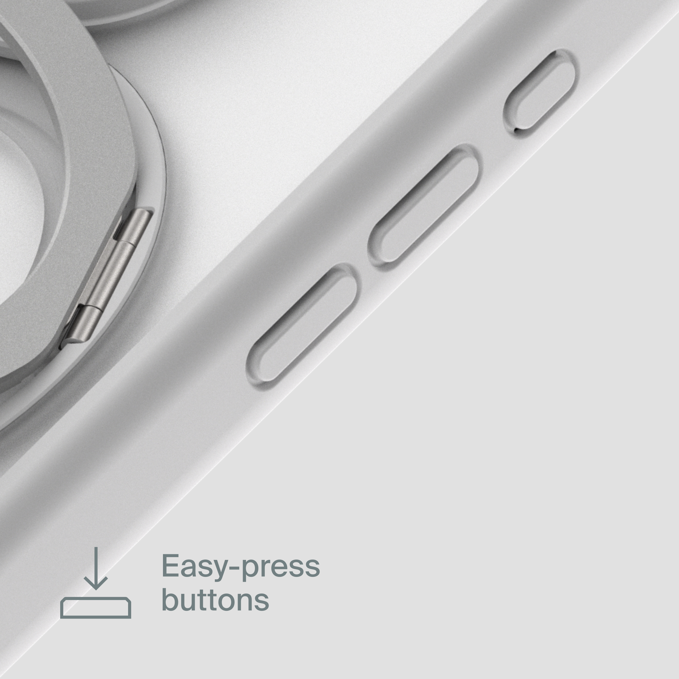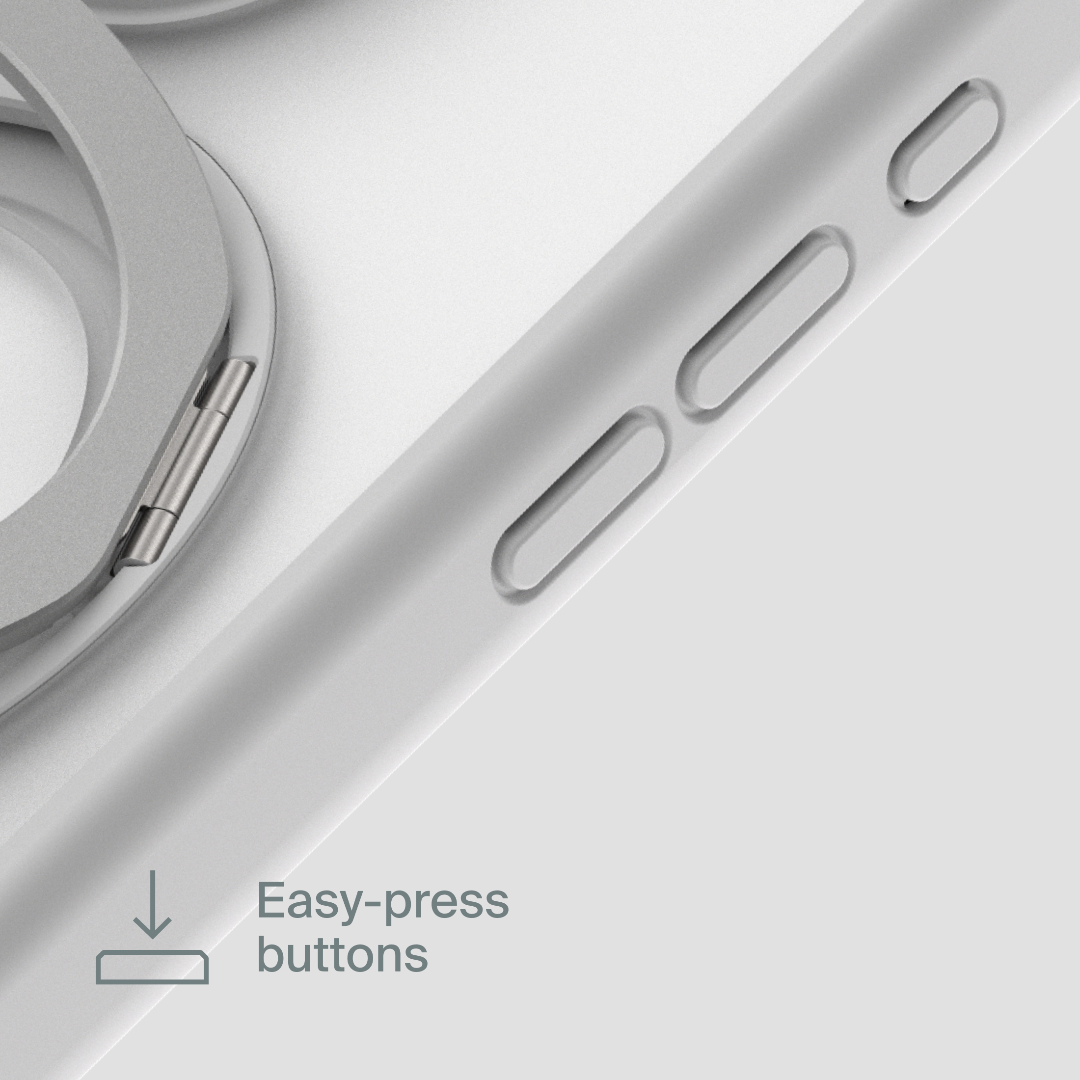 A durable aluminum ring with built-in magnets and a special hinge firmly holds your phone in any position — vertical or horizontal. The scratch-resistant ring is comfortable to hold and doubles as a secure stand for everyday use.