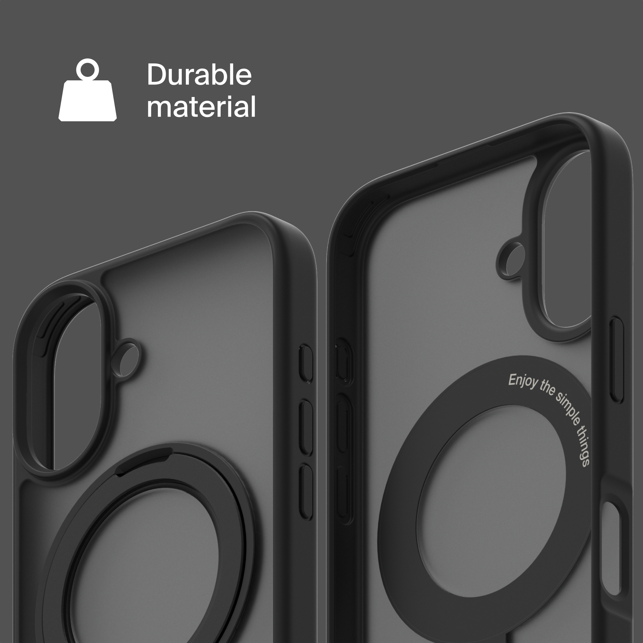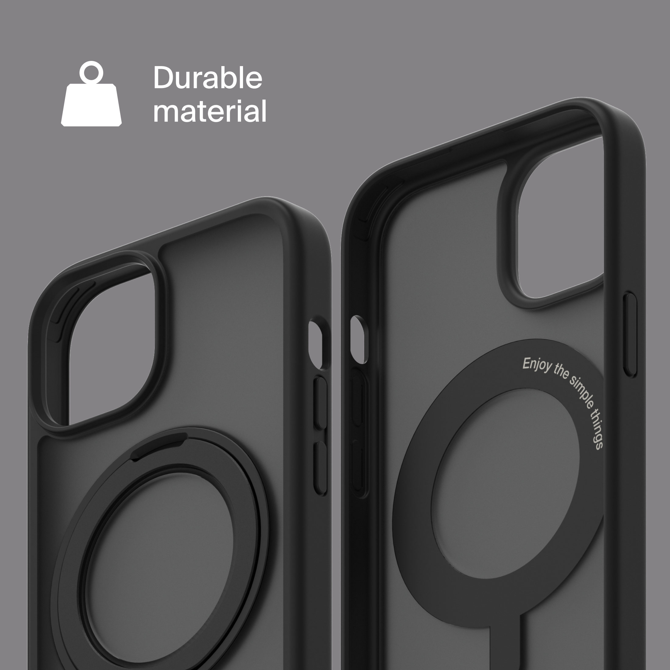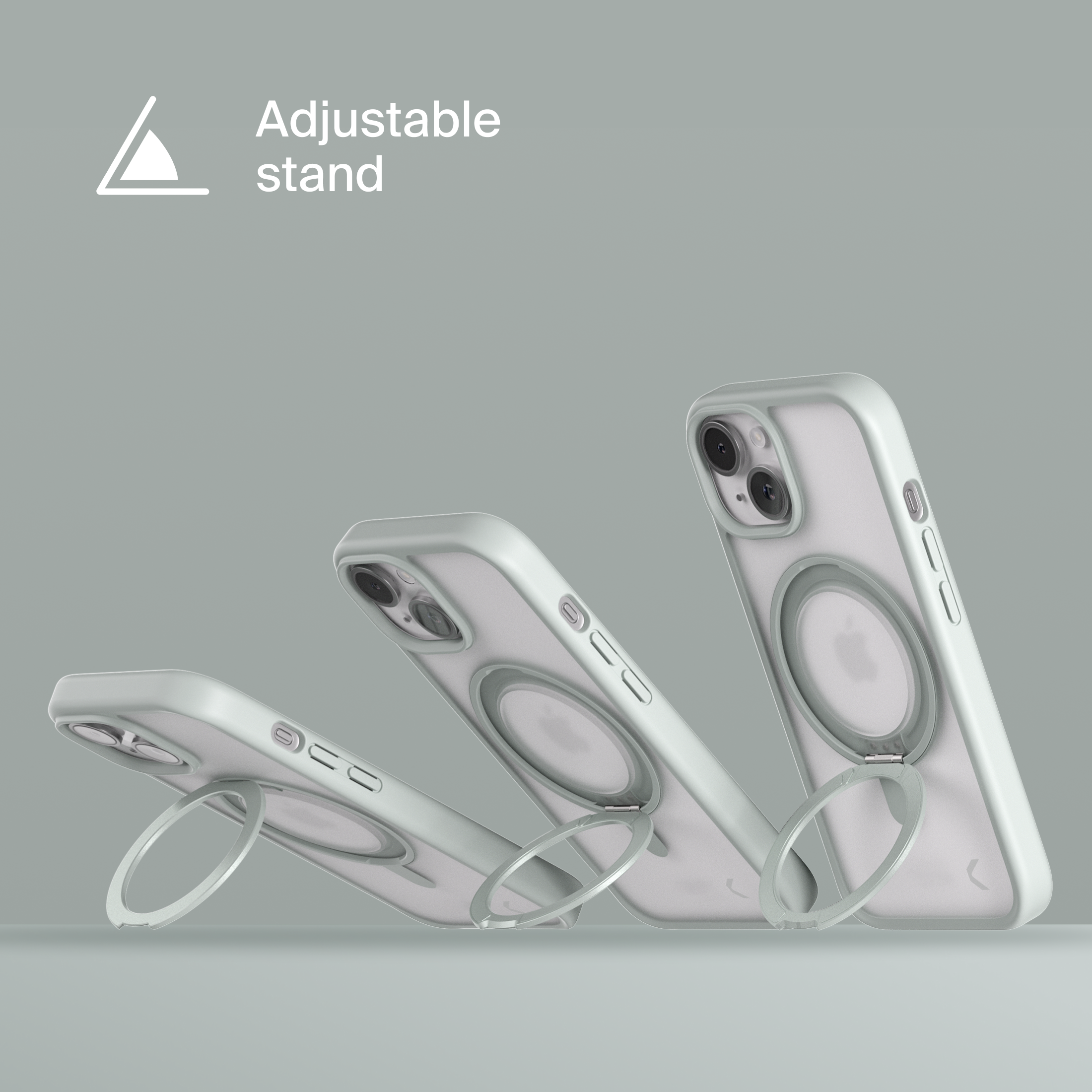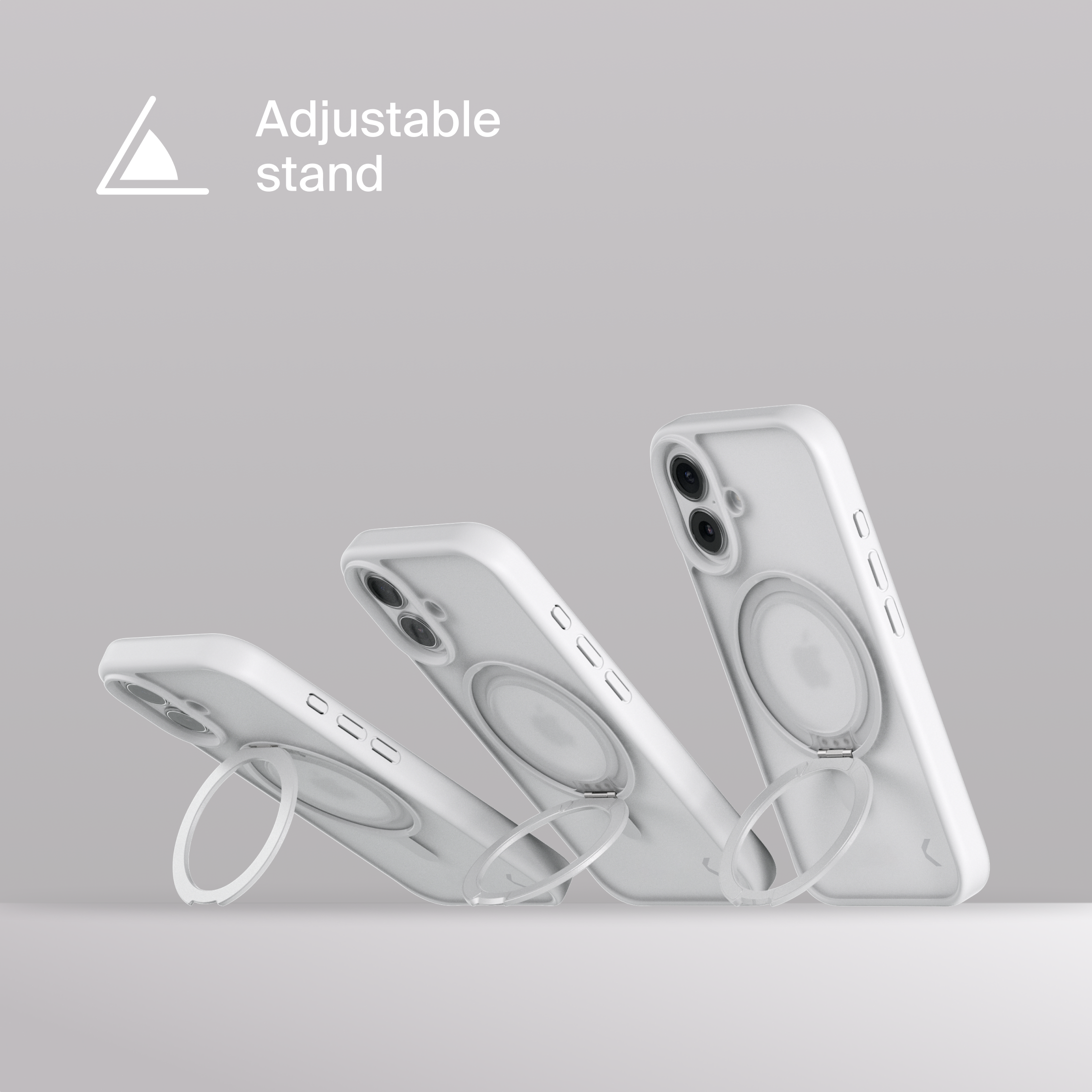 A durable aluminum ring with built-in magnets and a special hinge firmly holds your phone in any position — vertical or horizontal. The scratch-resistant ring is comfortable to hold and doubles as a secure stand for everyday use.