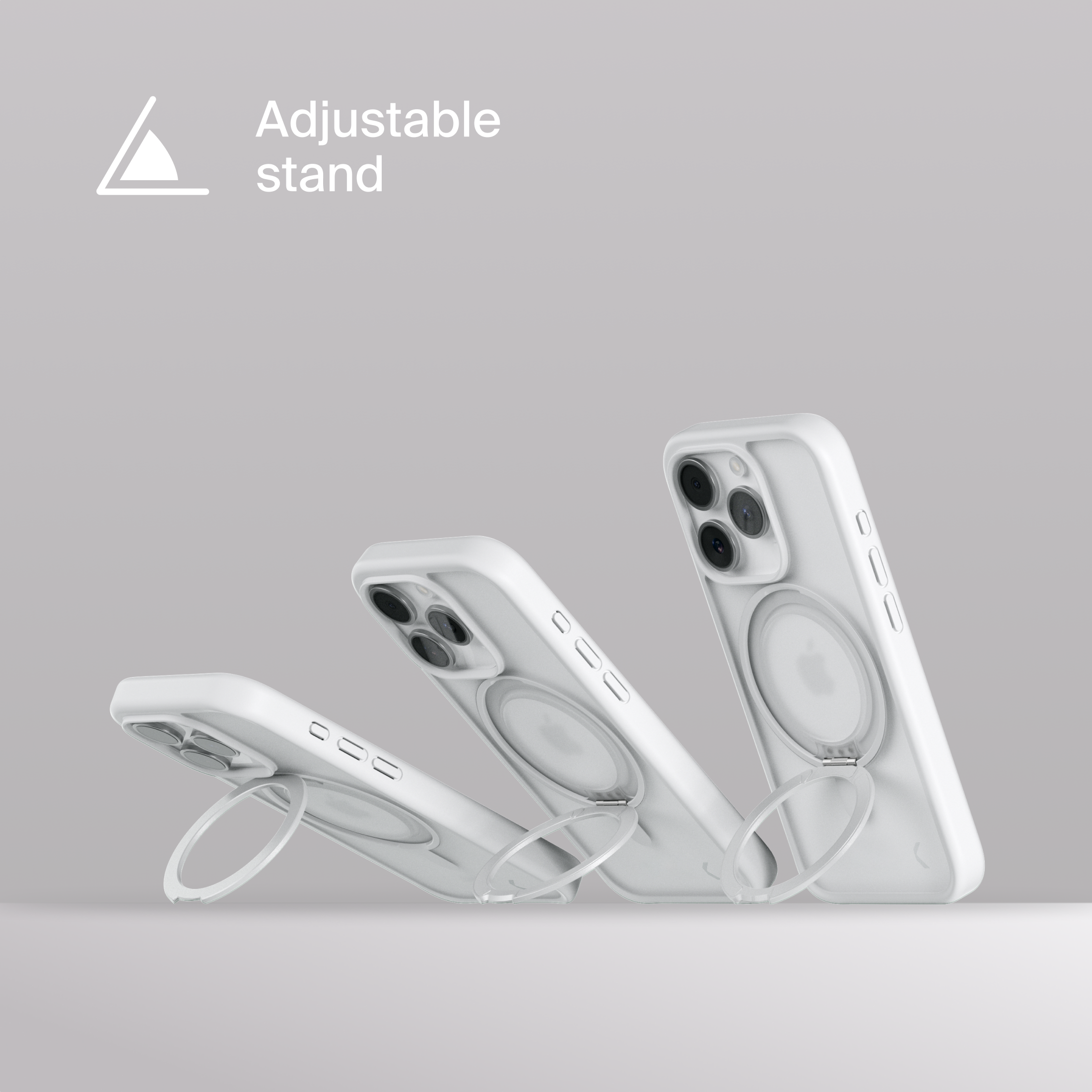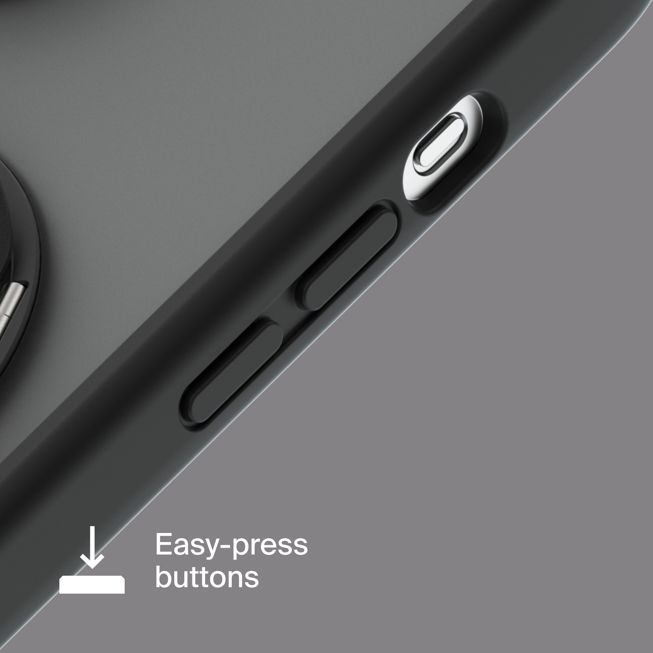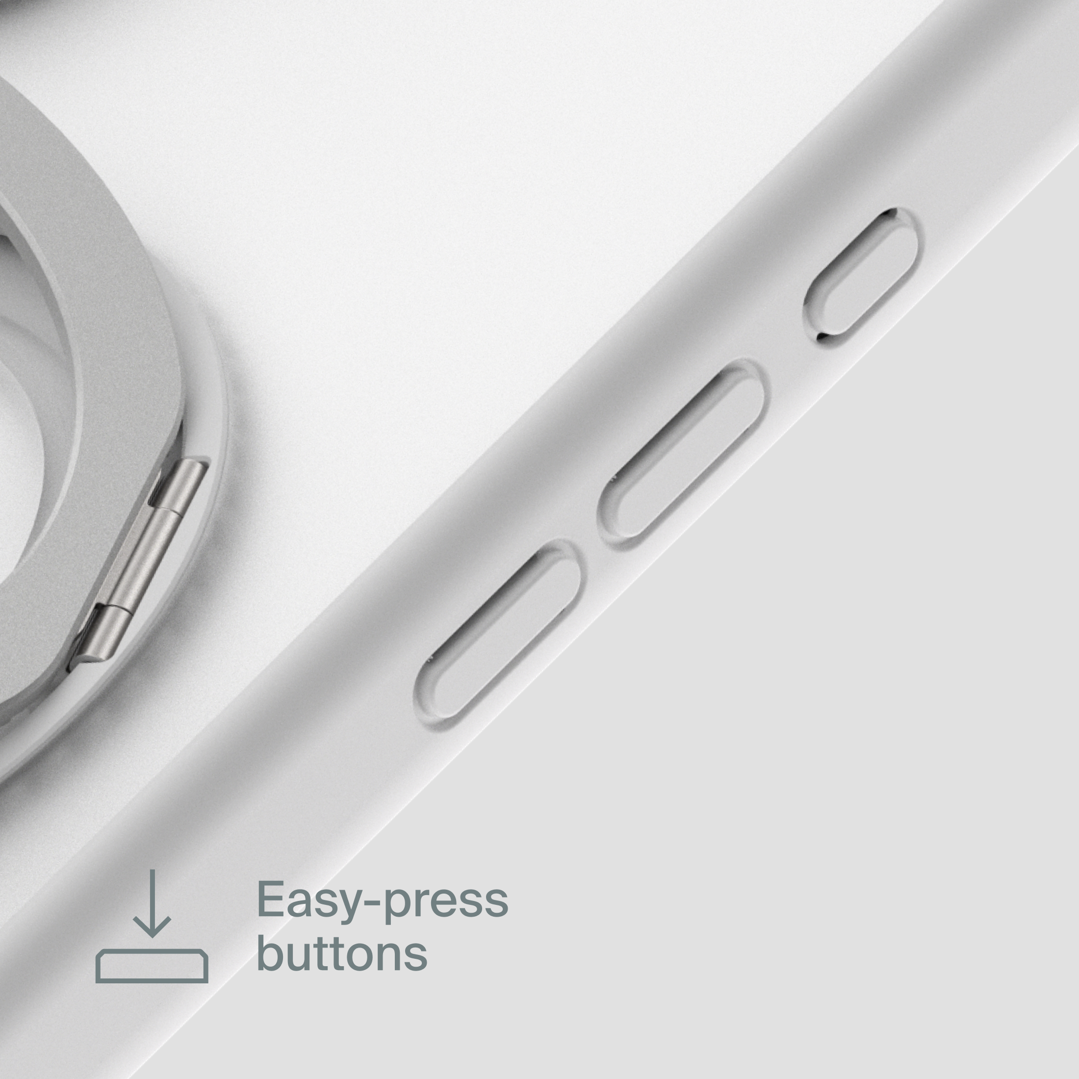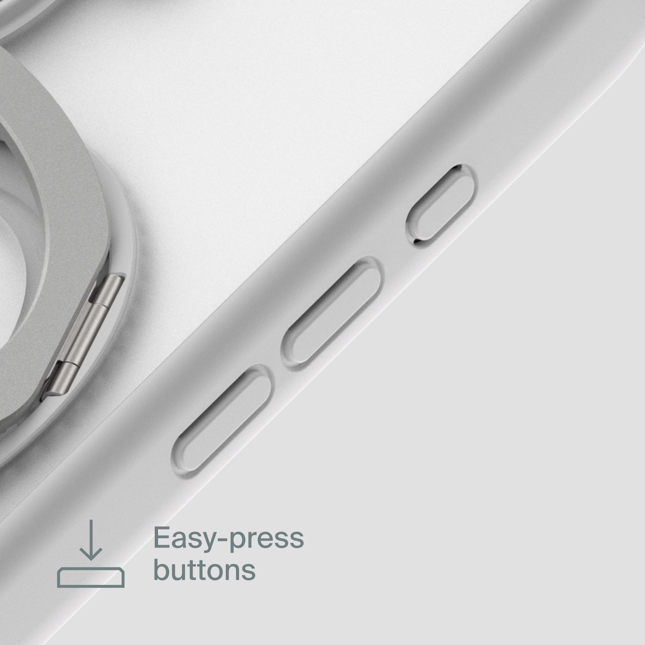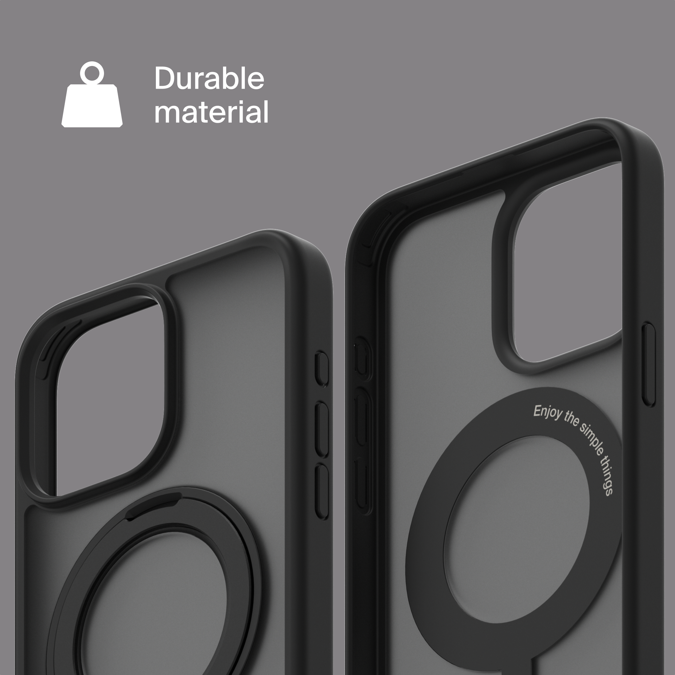 A durable aluminum ring with built-in magnets and a special hinge firmly holds your phone in any position — vertical or horizontal. The scratch-resistant ring is comfortable to hold and doubles as a secure stand for everyday use.
