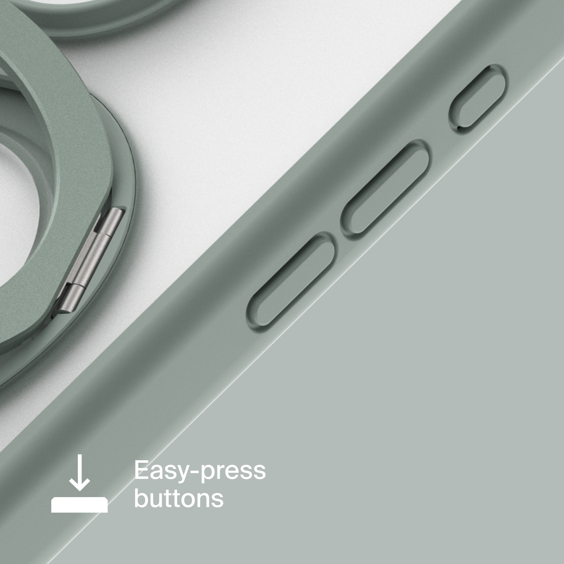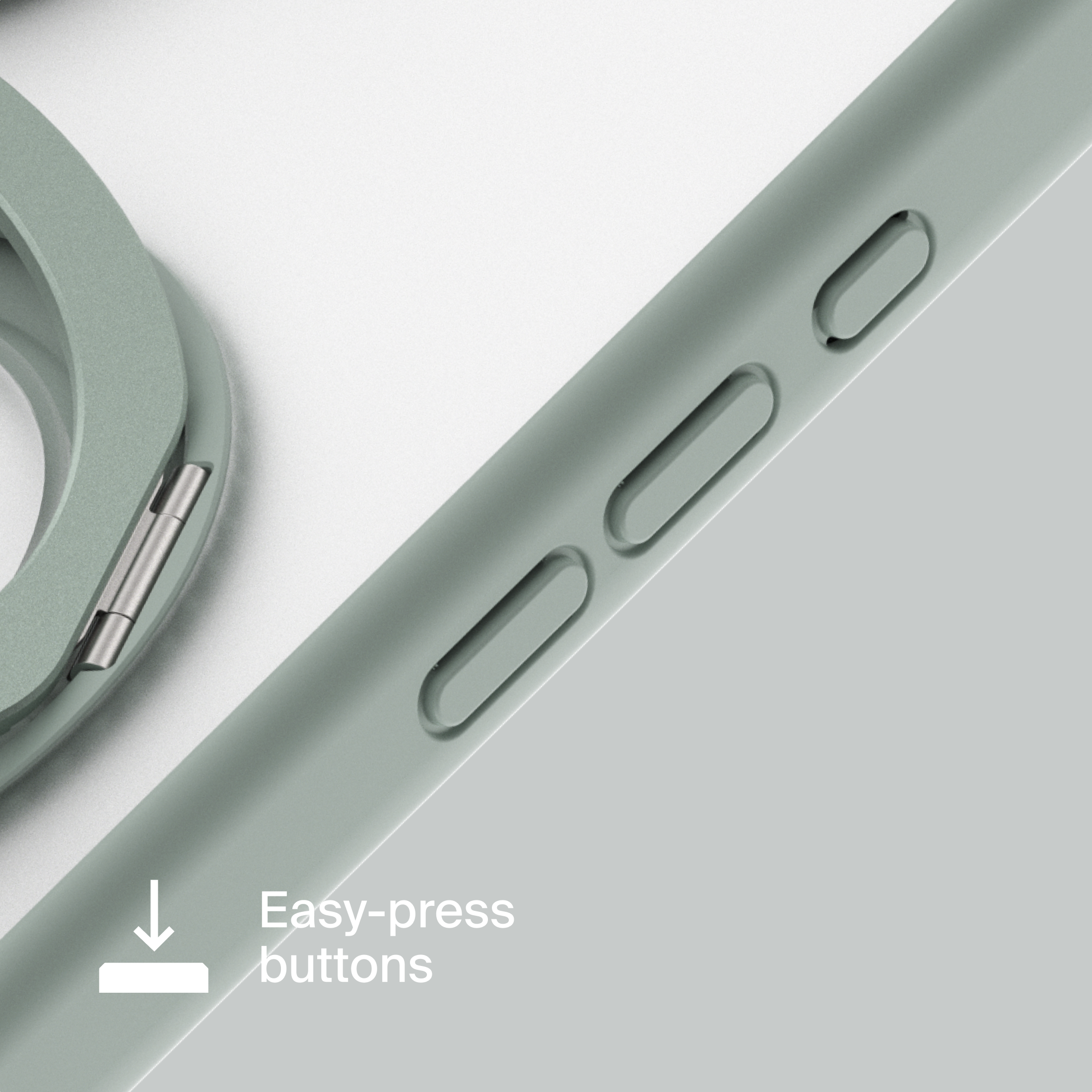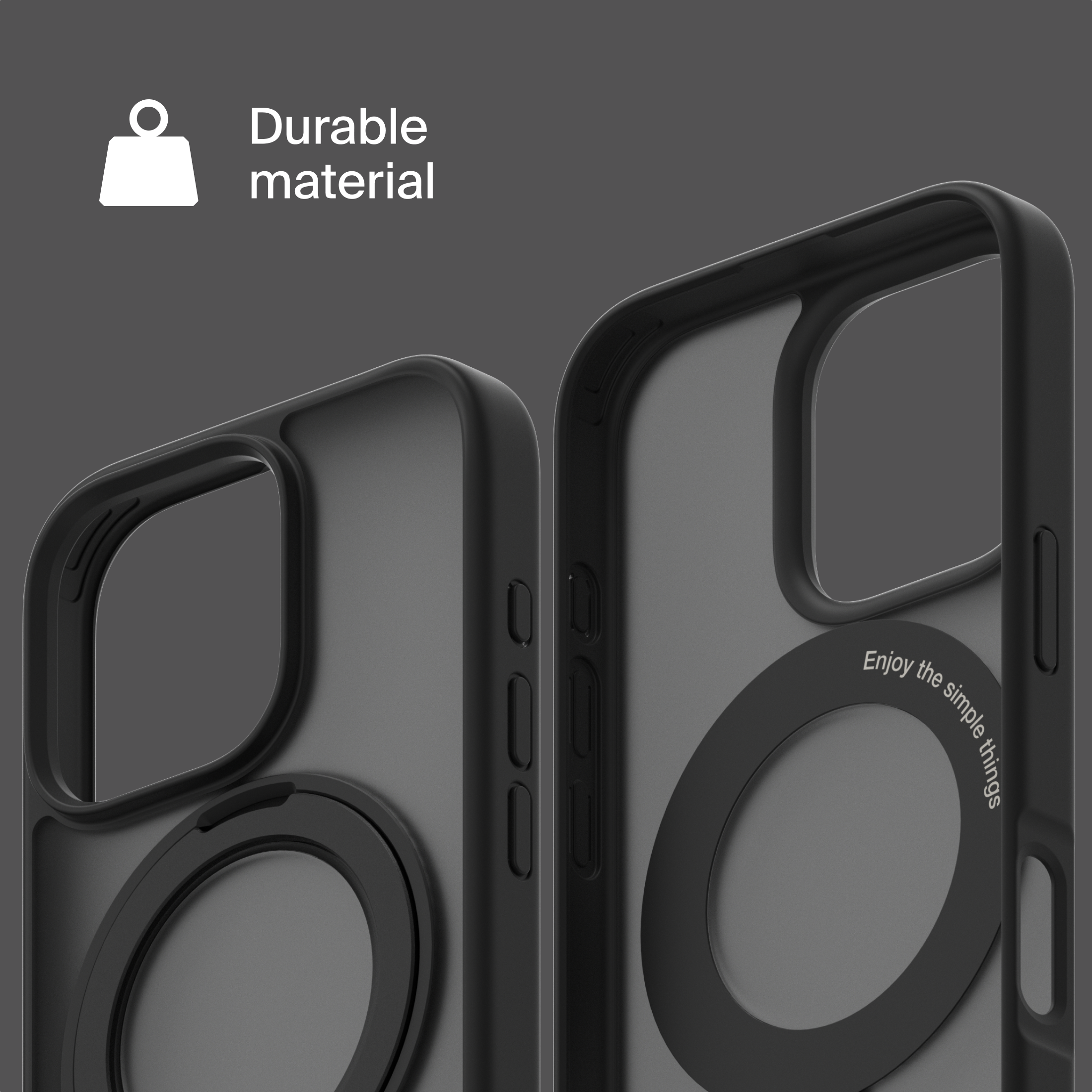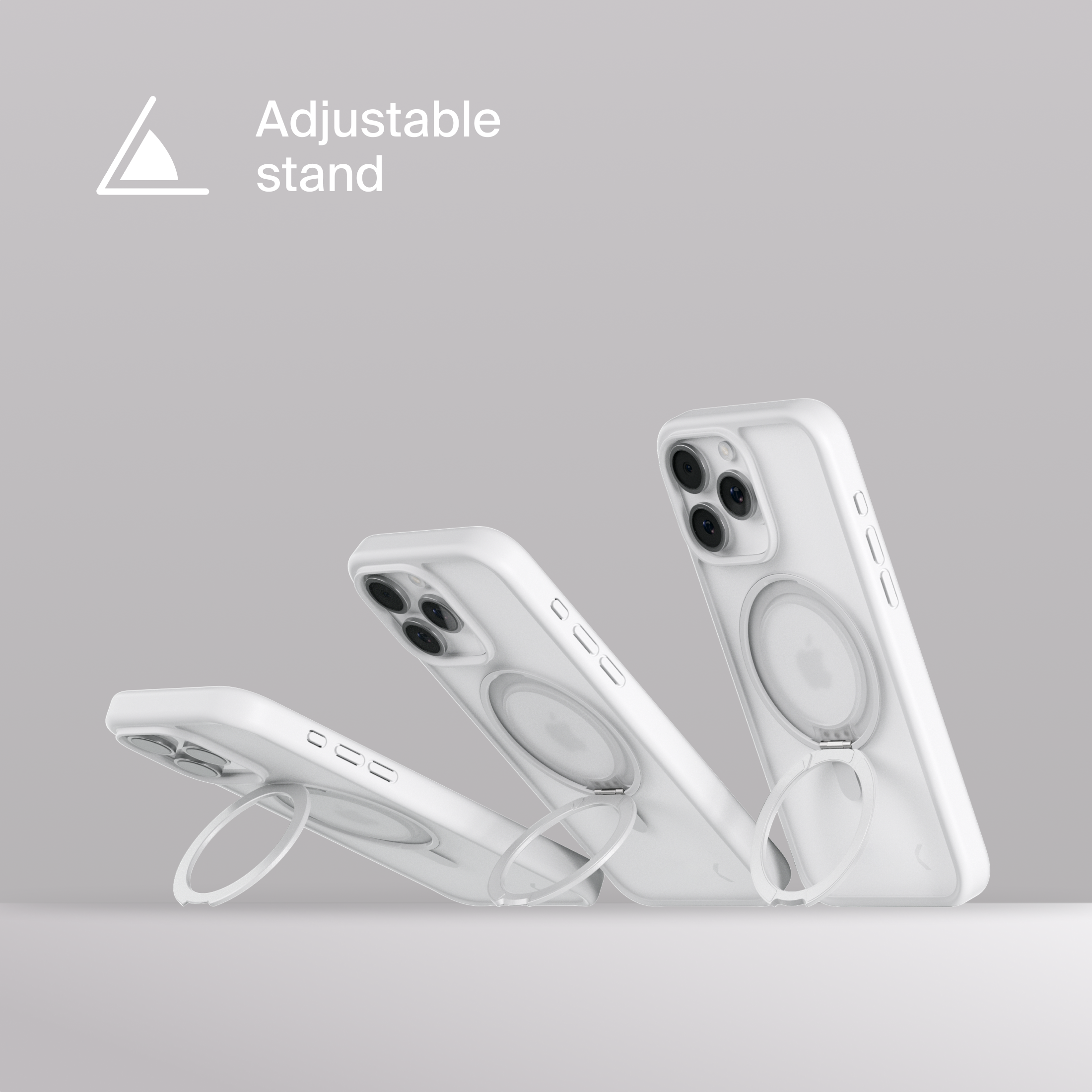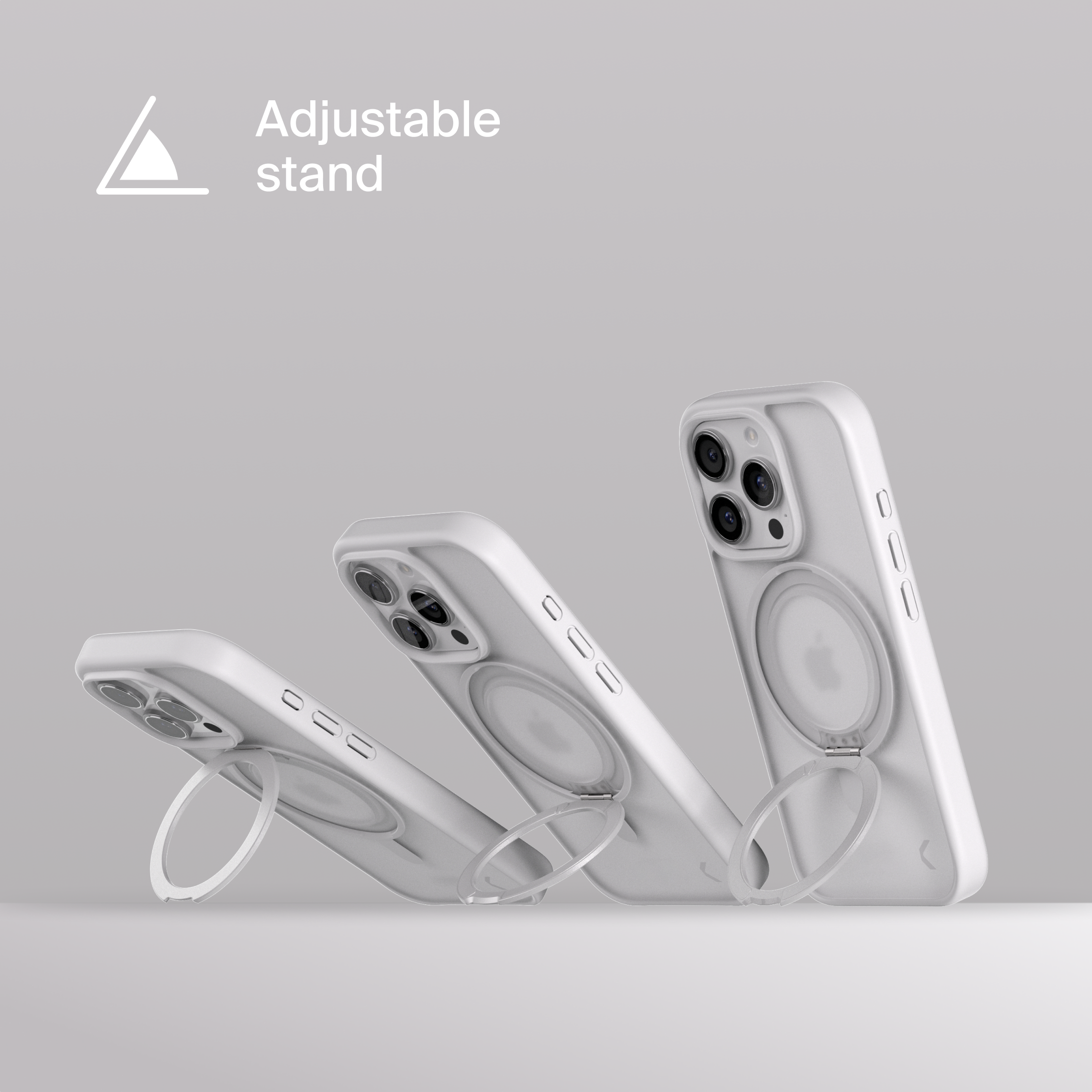 A durable aluminum ring with built-in magnets and a special hinge firmly holds your phone in any position — vertical or horizontal. The scratch-resistant ring is comfortable to hold and doubles as a secure stand for everyday use.
