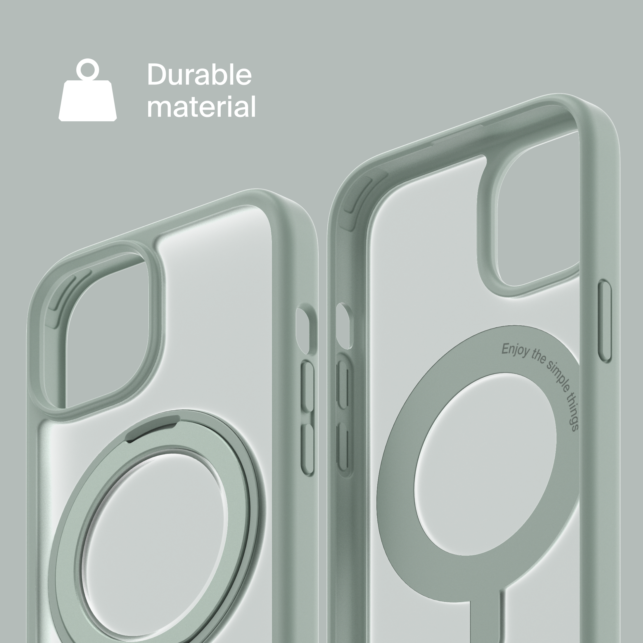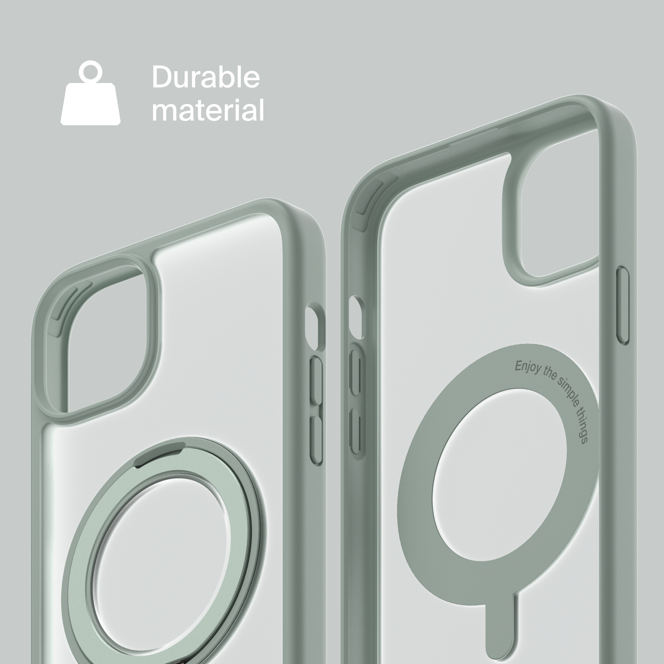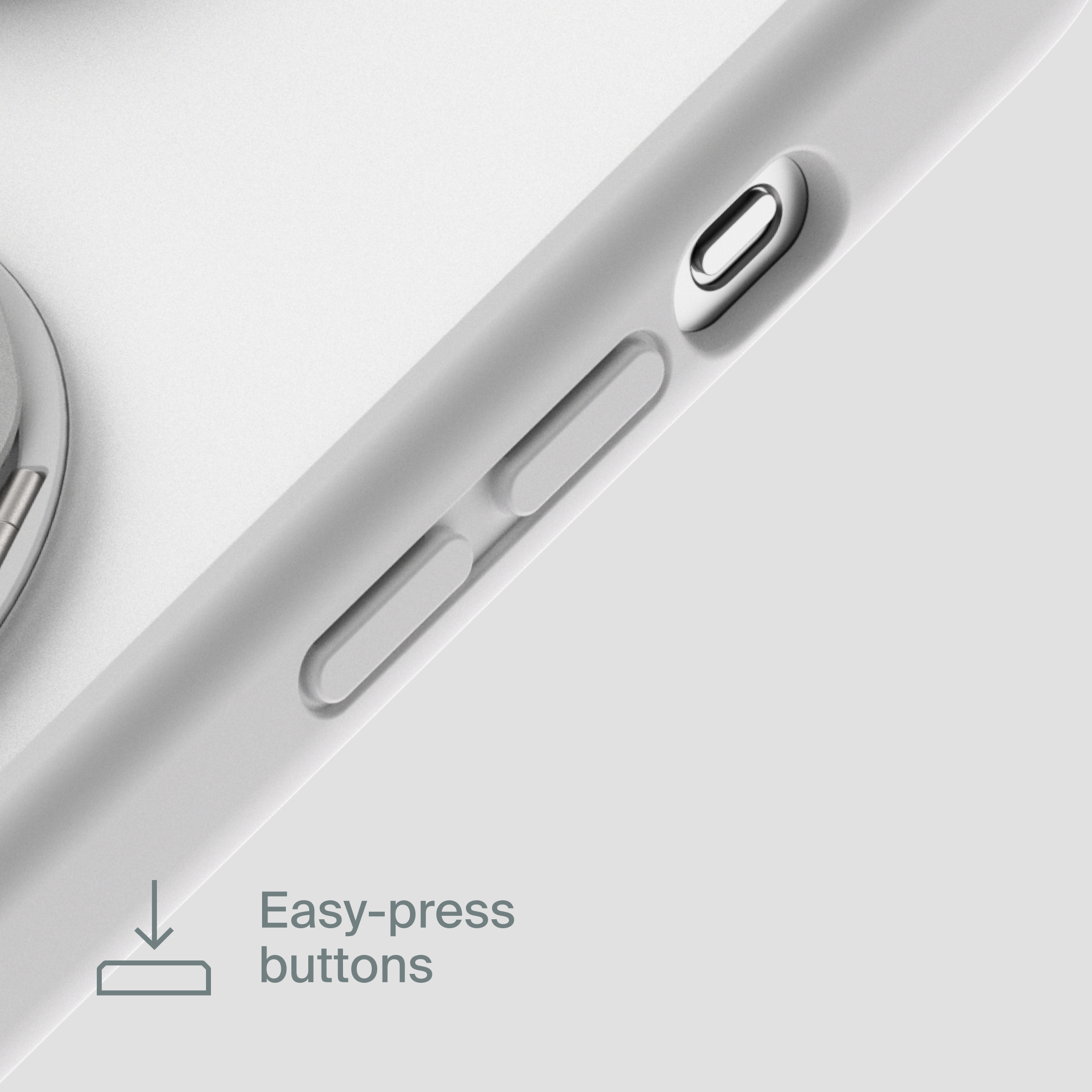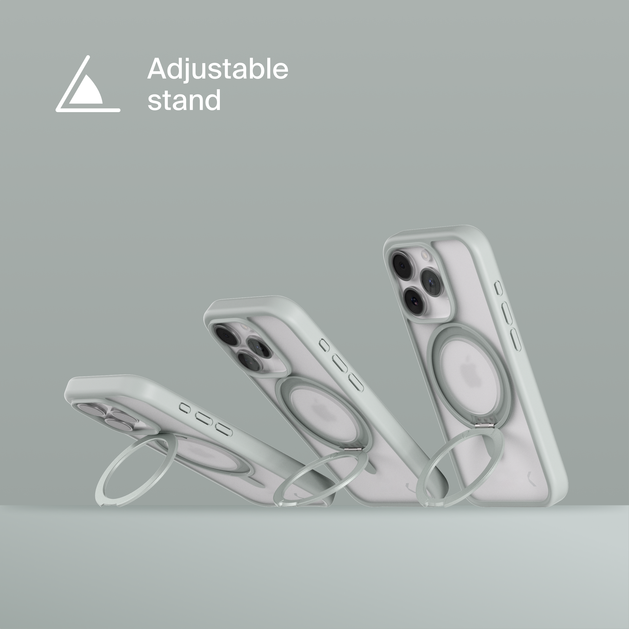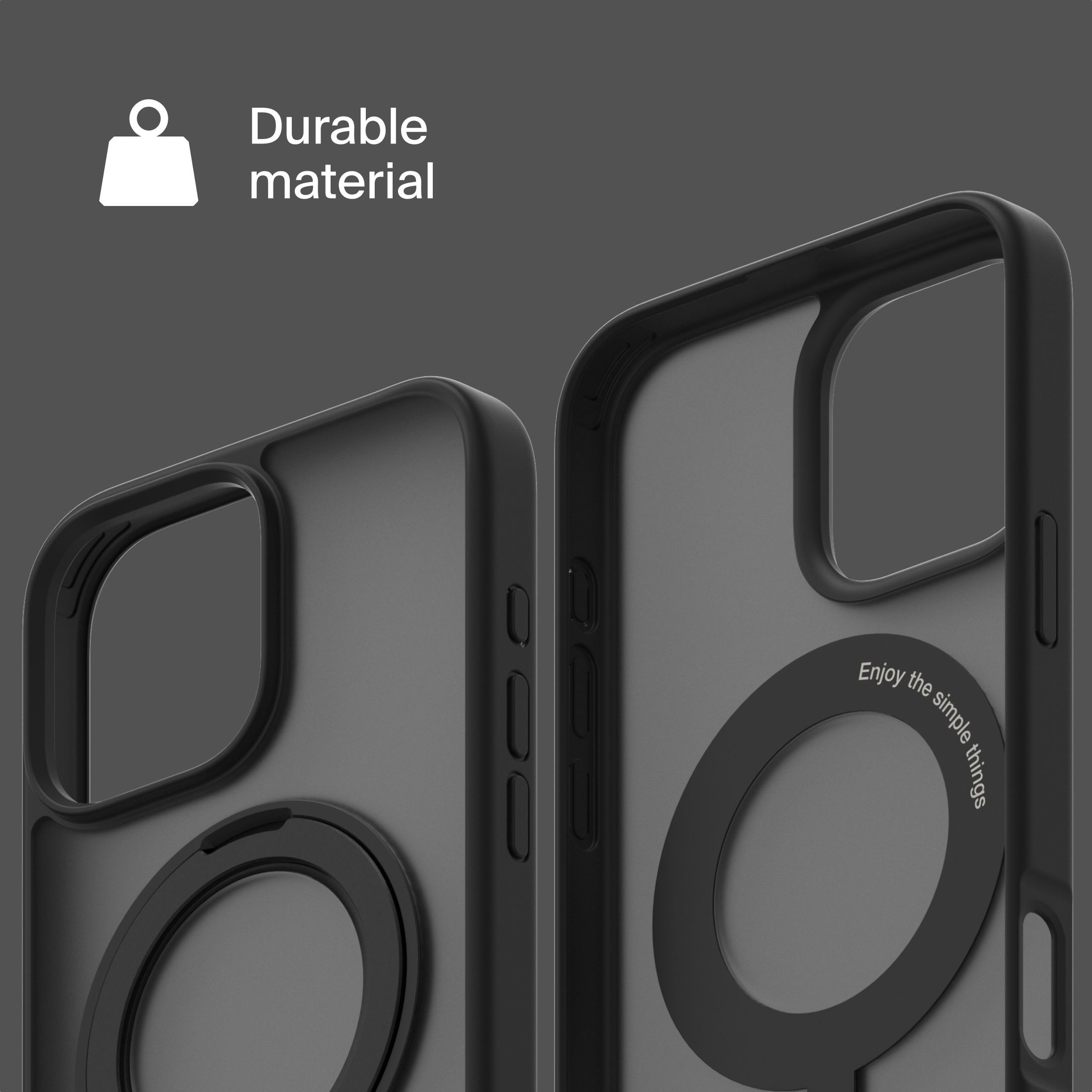 A durable aluminum ring with built-in magnets and a special hinge firmly holds your phone in any position — vertical or horizontal. The scratch-resistant ring is comfortable to hold and doubles as a secure stand for everyday use.
