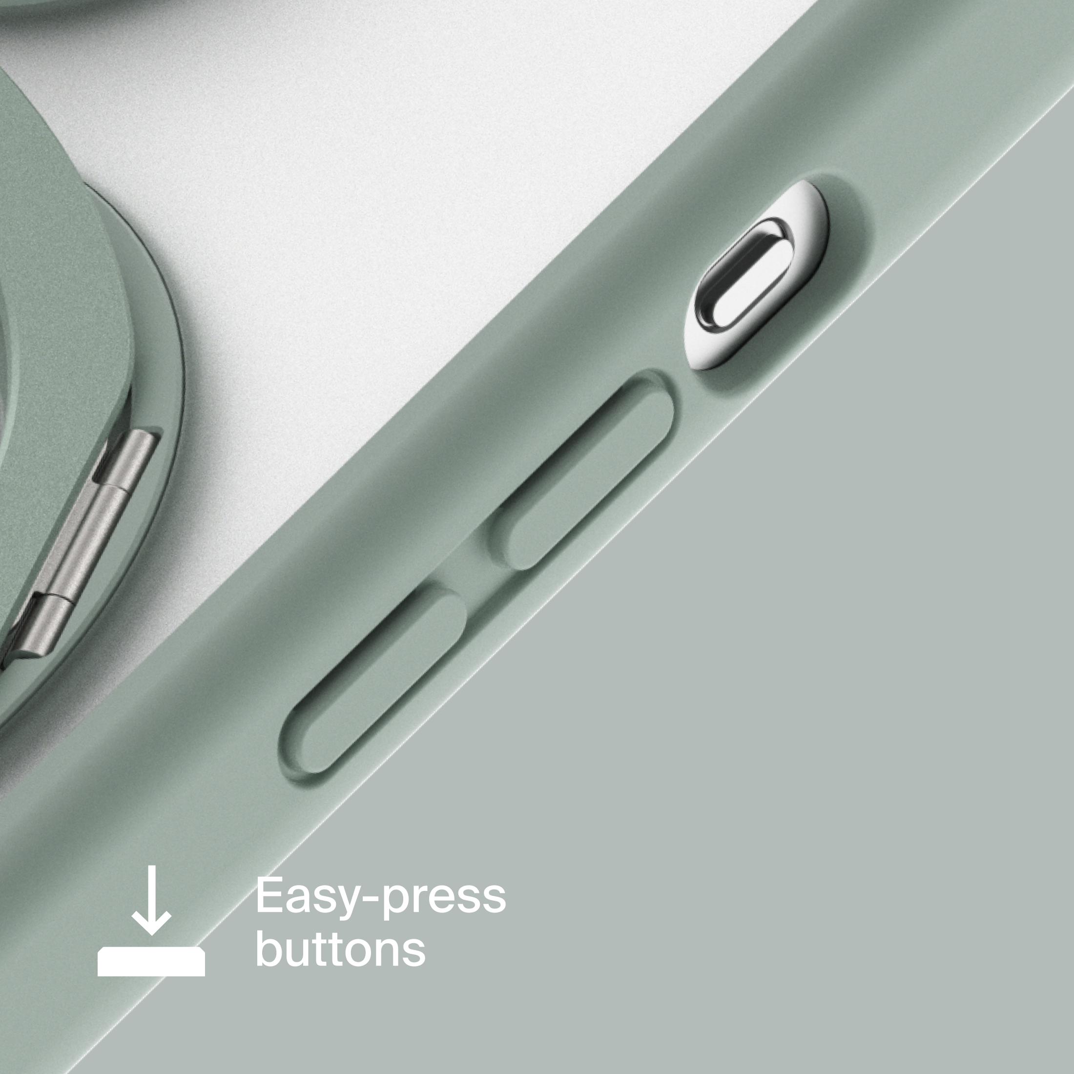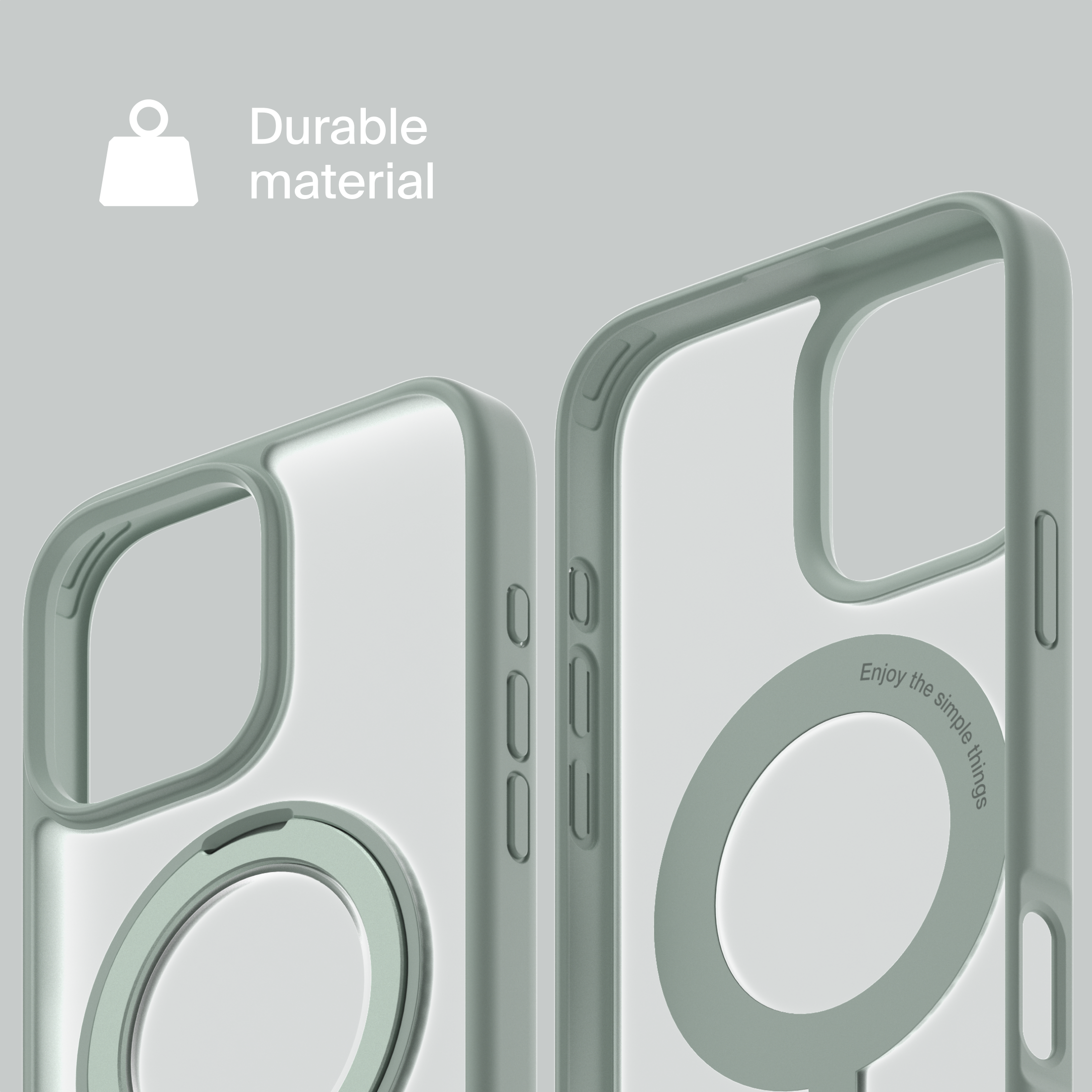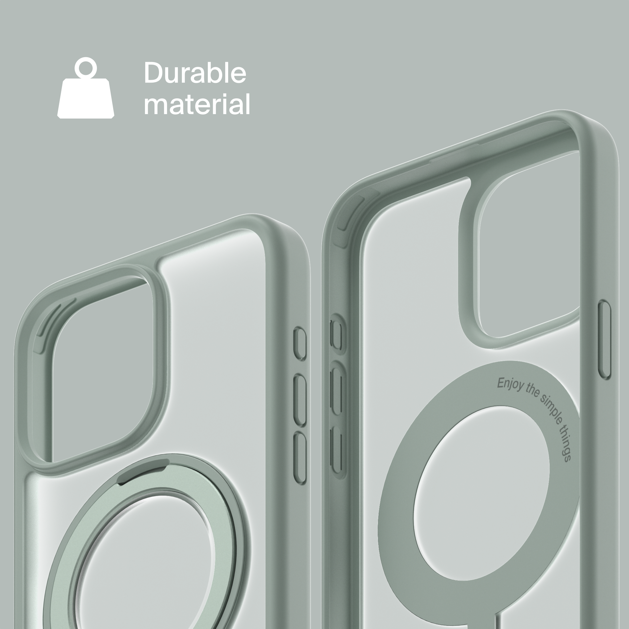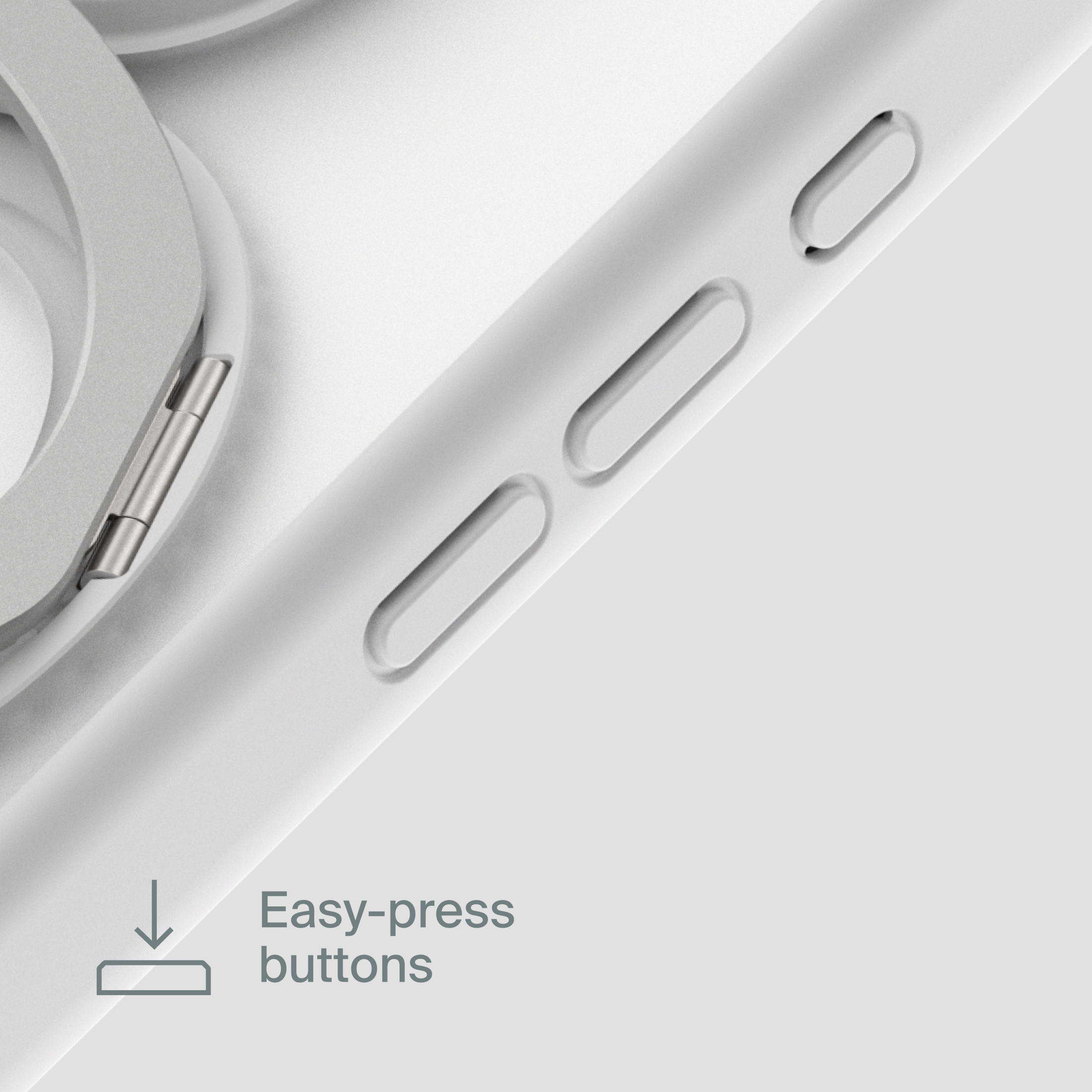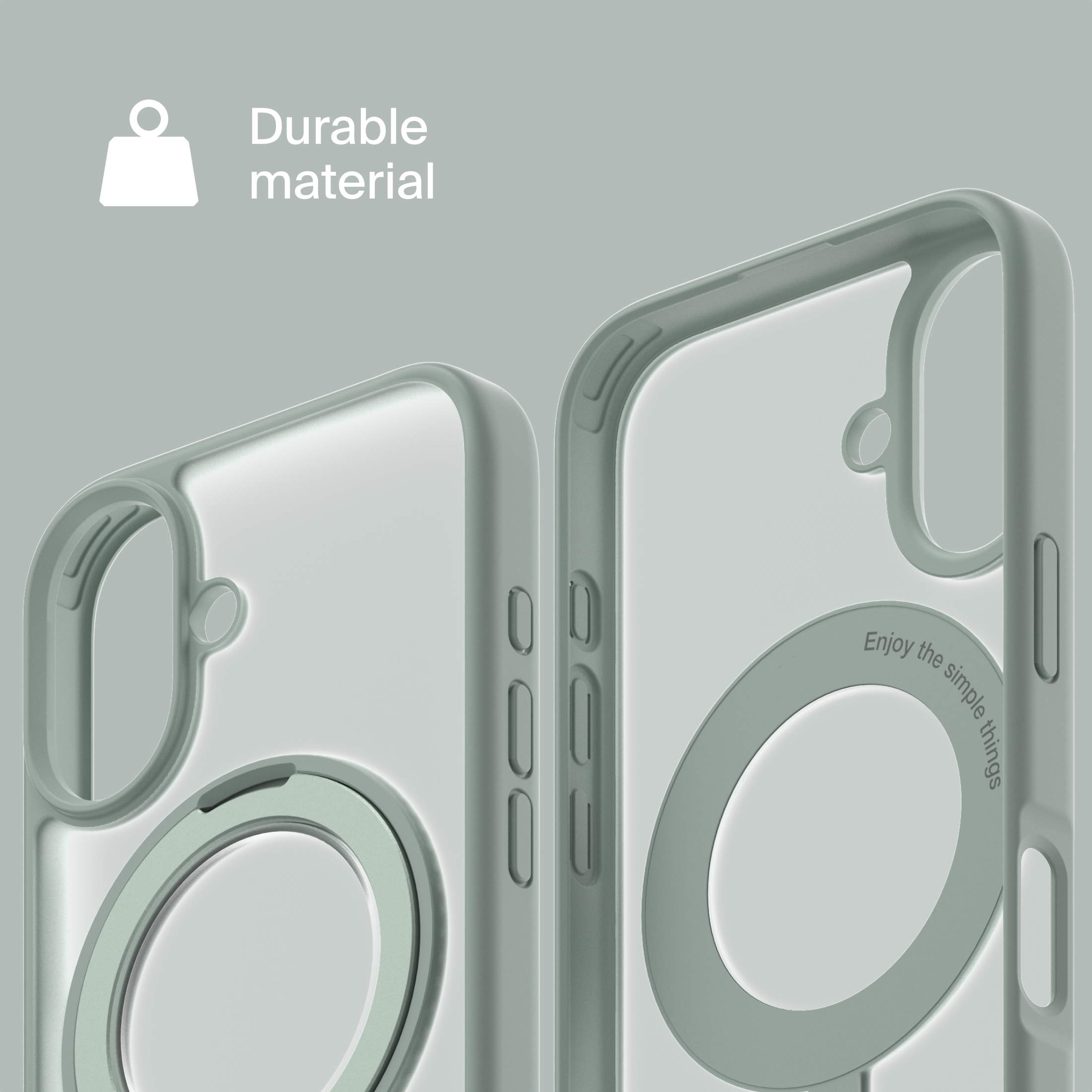 A durable aluminum ring with built-in magnets and a special hinge firmly holds your phone in any position — vertical or horizontal. The scratch-resistant ring is comfortable to hold and doubles as a secure stand for everyday use.