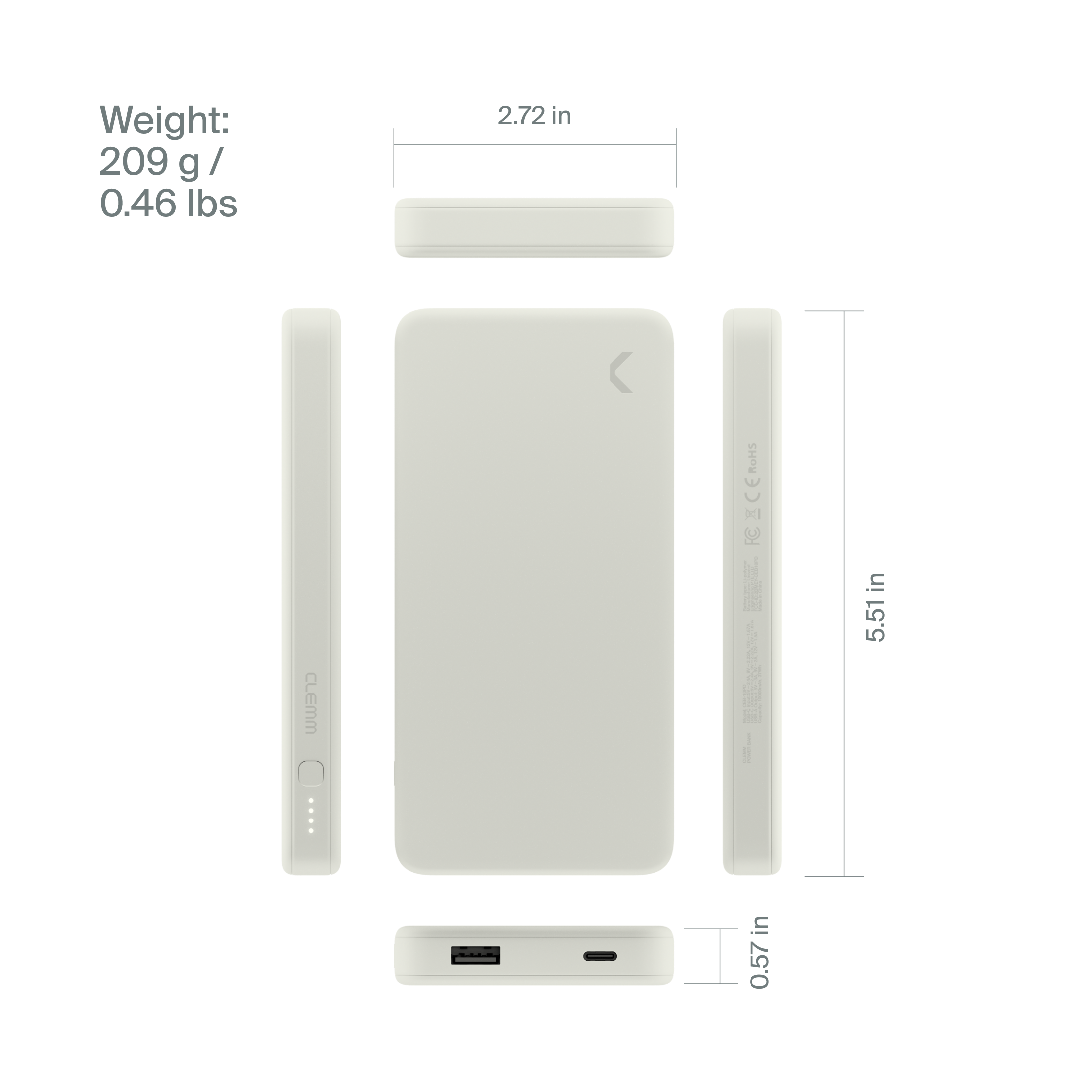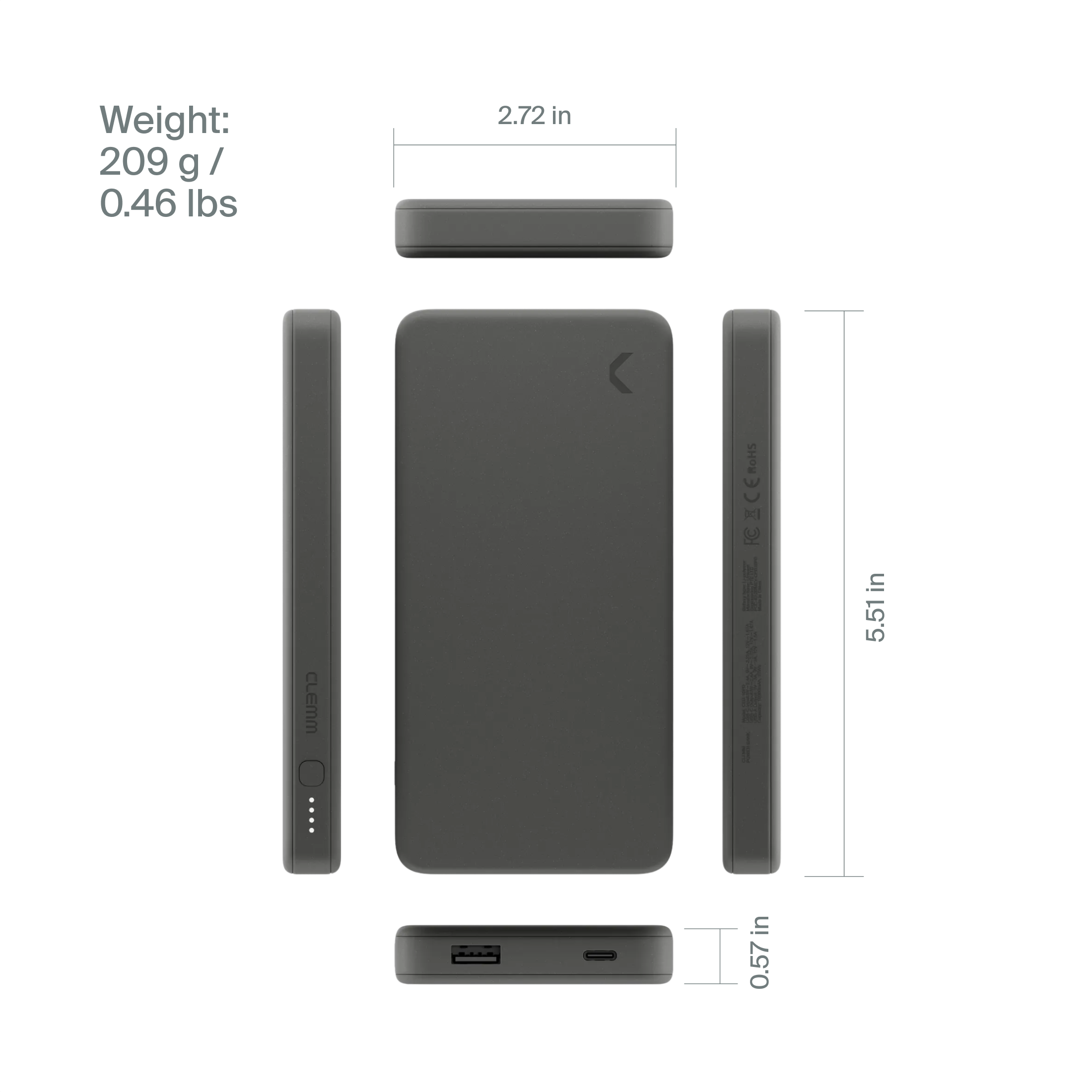 Clemm Source 10,000 mAh Power Bank delivers enough power for multiple full smartphone charges without needing to recharge the power bank itself.