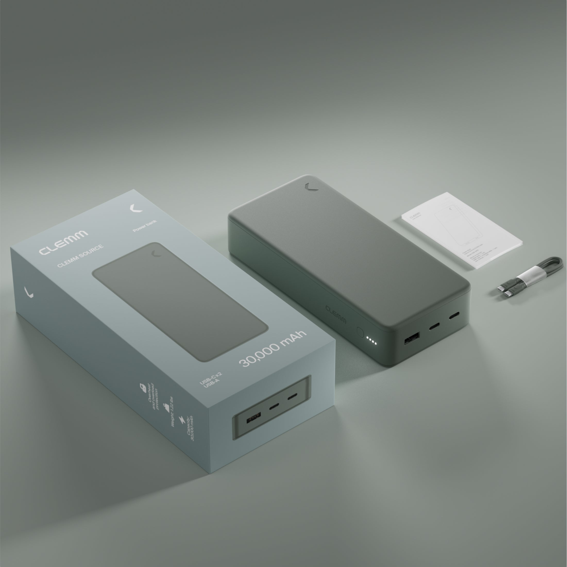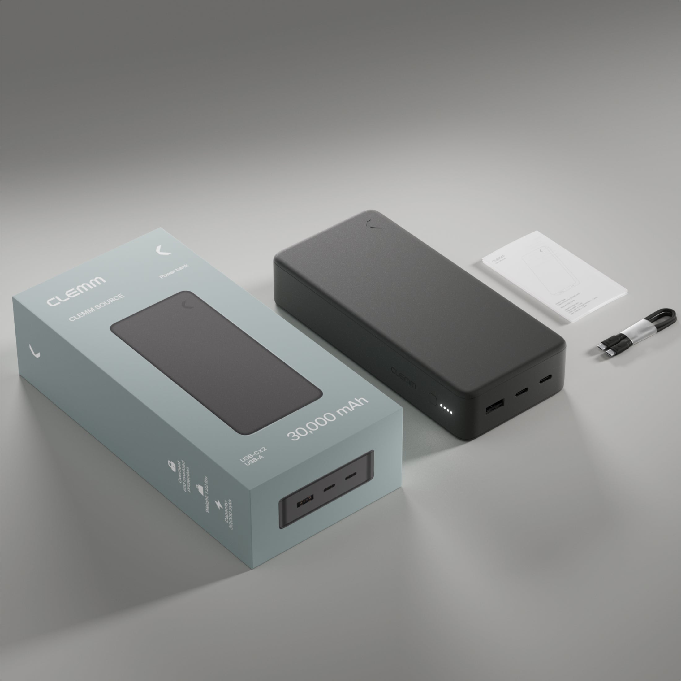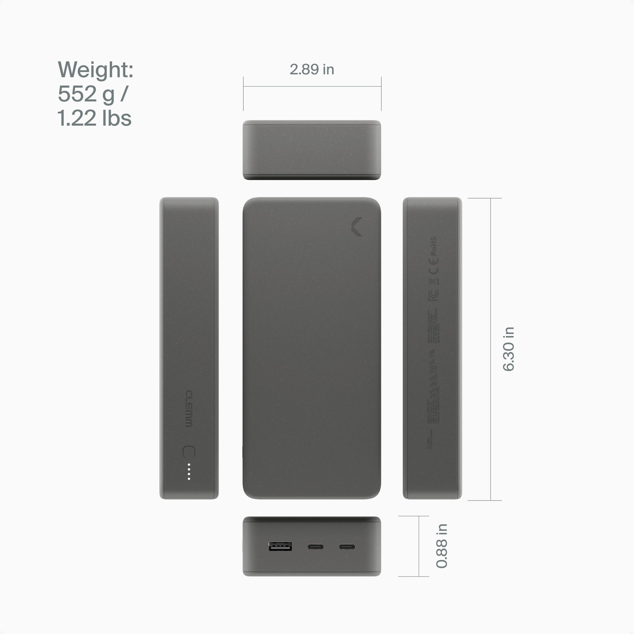 Clemm Source 30,000 mAh Power Bank delivers up to six full smartphone charges, two tablet charges, or one laptop charge — keeping you powered all day, every day.