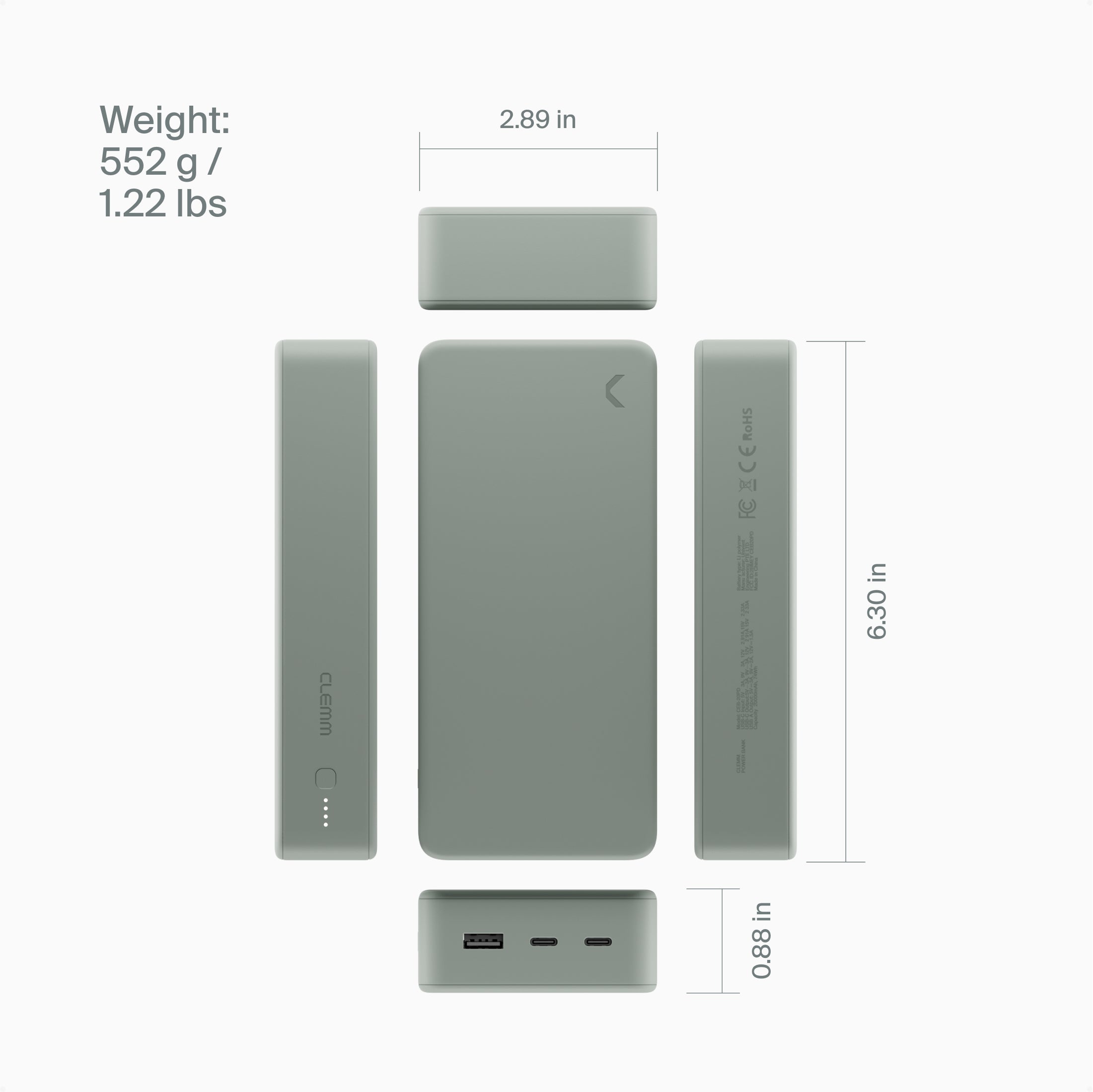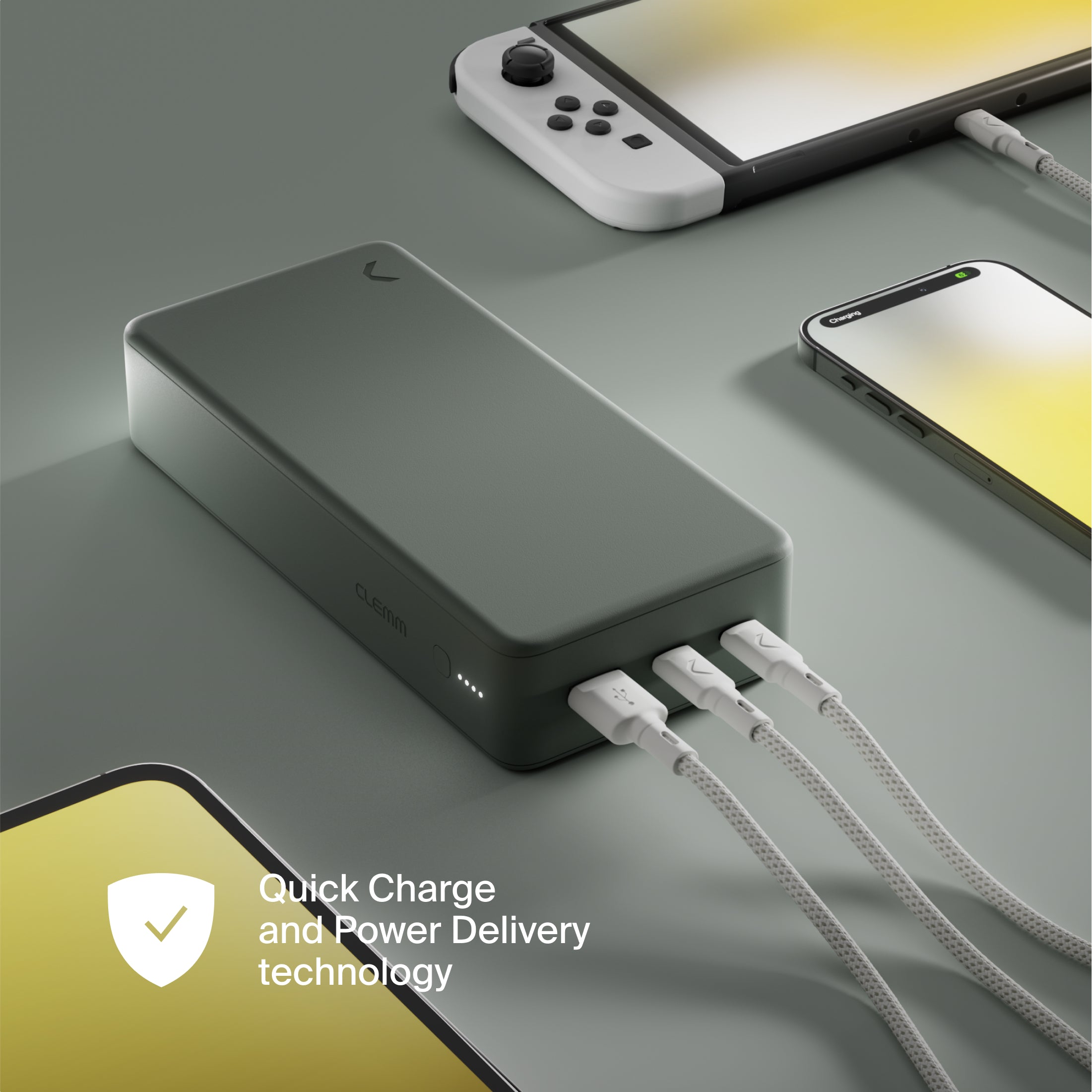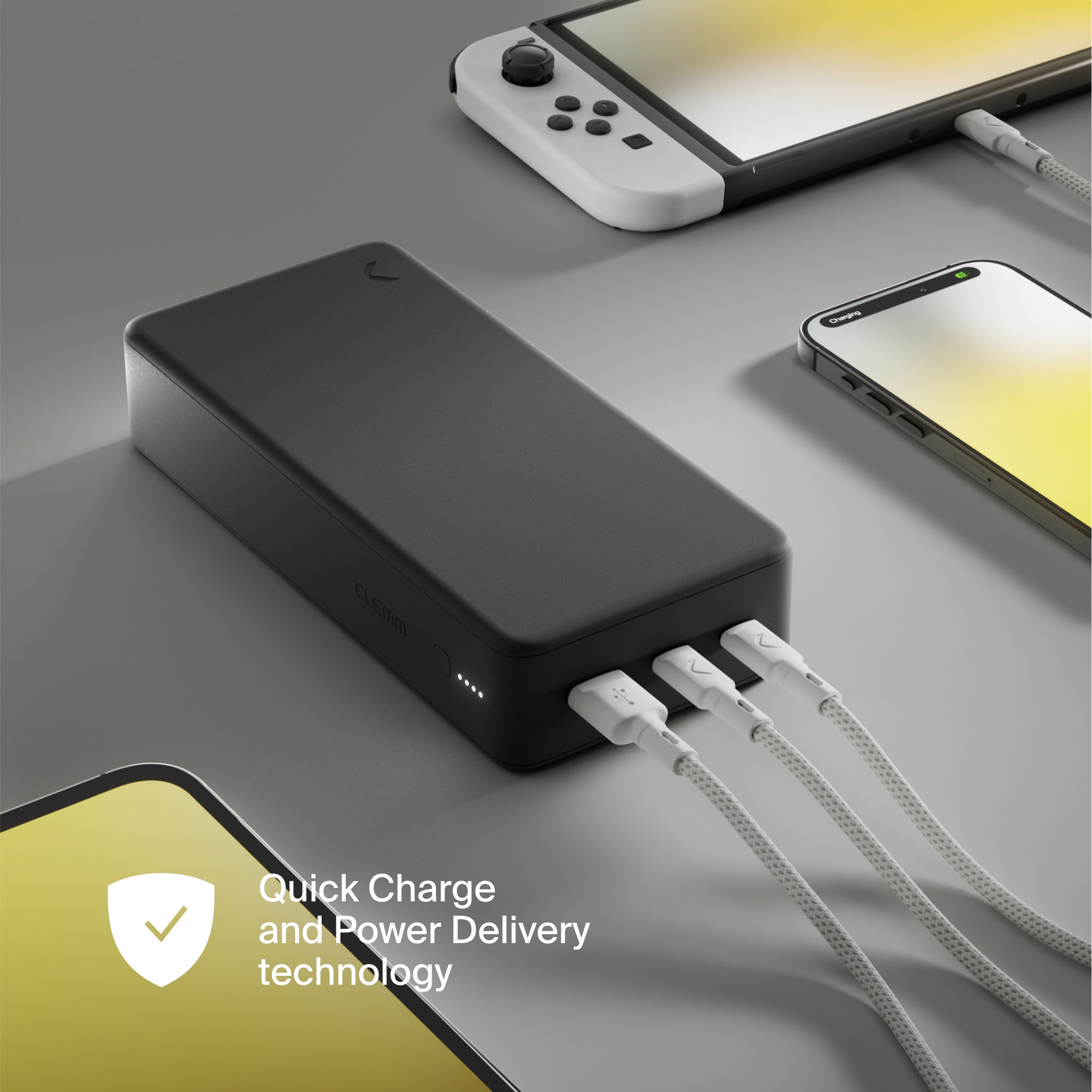 Clemm Source 30,000 mAh Power Bank delivers up to six full smartphone charges, two tablet charges, or one laptop charge — keeping you powered all day, every day.