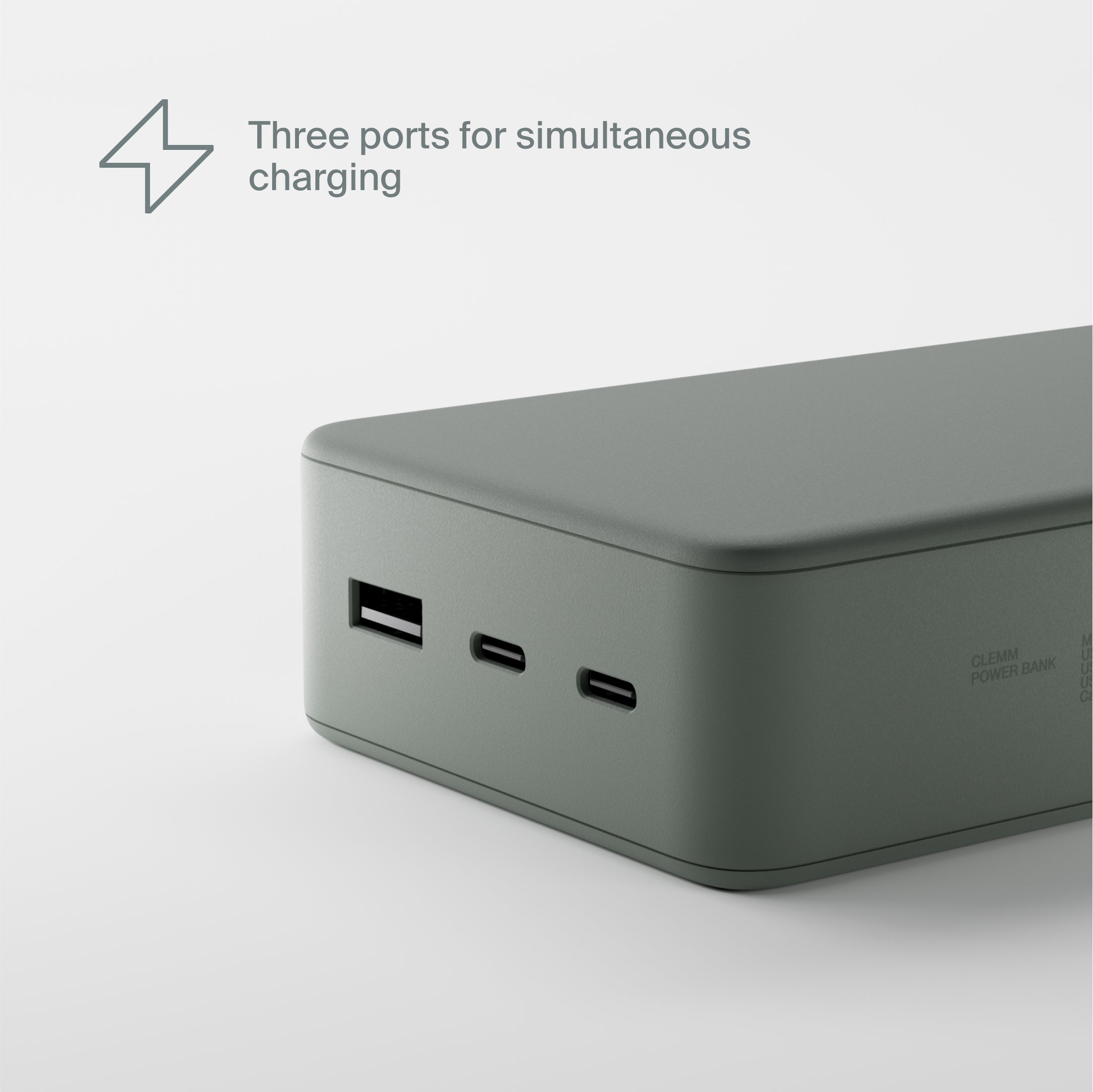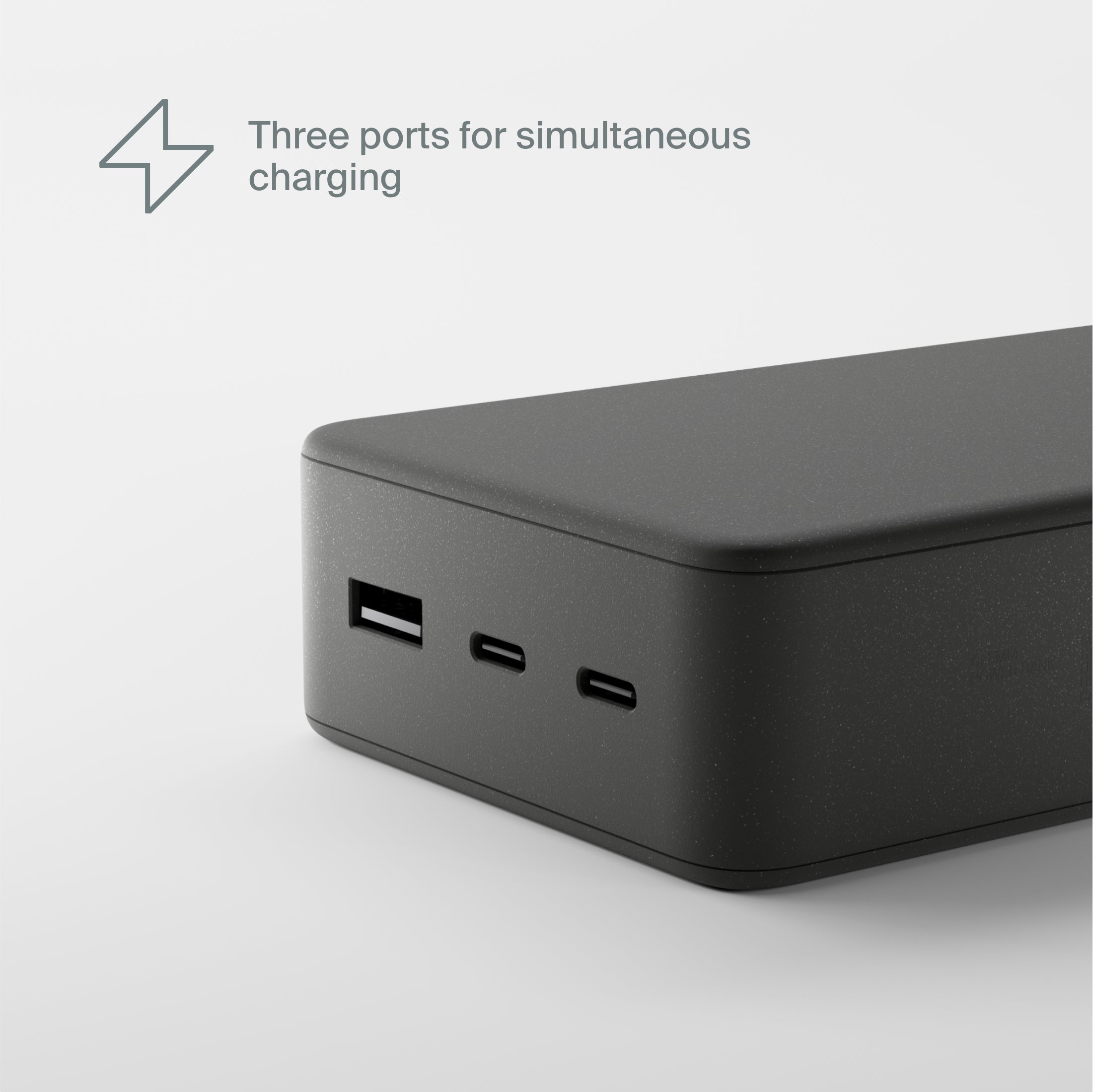 Three ports let you power up multiple gadgets at once, such as your phone and laptop. Compact, lightweight, and finished with a soft-touch coating, it's perfect for travel.